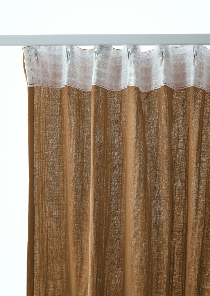 Lot de 2 Rideaux Galon Fronceur double Gaze de coton – Camel – 140 x 240 cm
