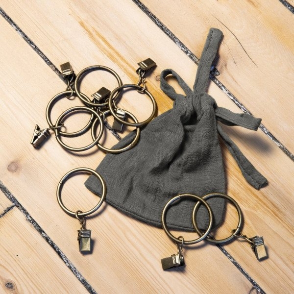 8 anneaux avec pinces permettant d'ajuster les rideaux aux dimensions des fenêtres.