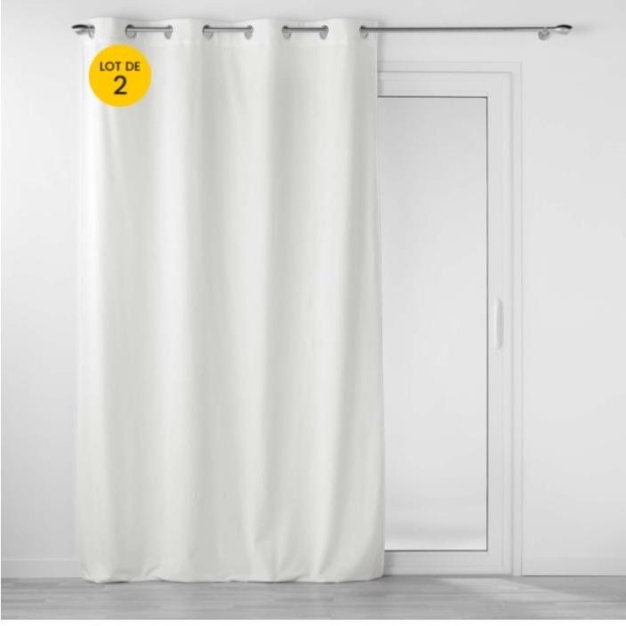 Lot de 2 Rideaux tamisants à œillets 140 x 260 cm – Velours relief Velouriane Blanc
