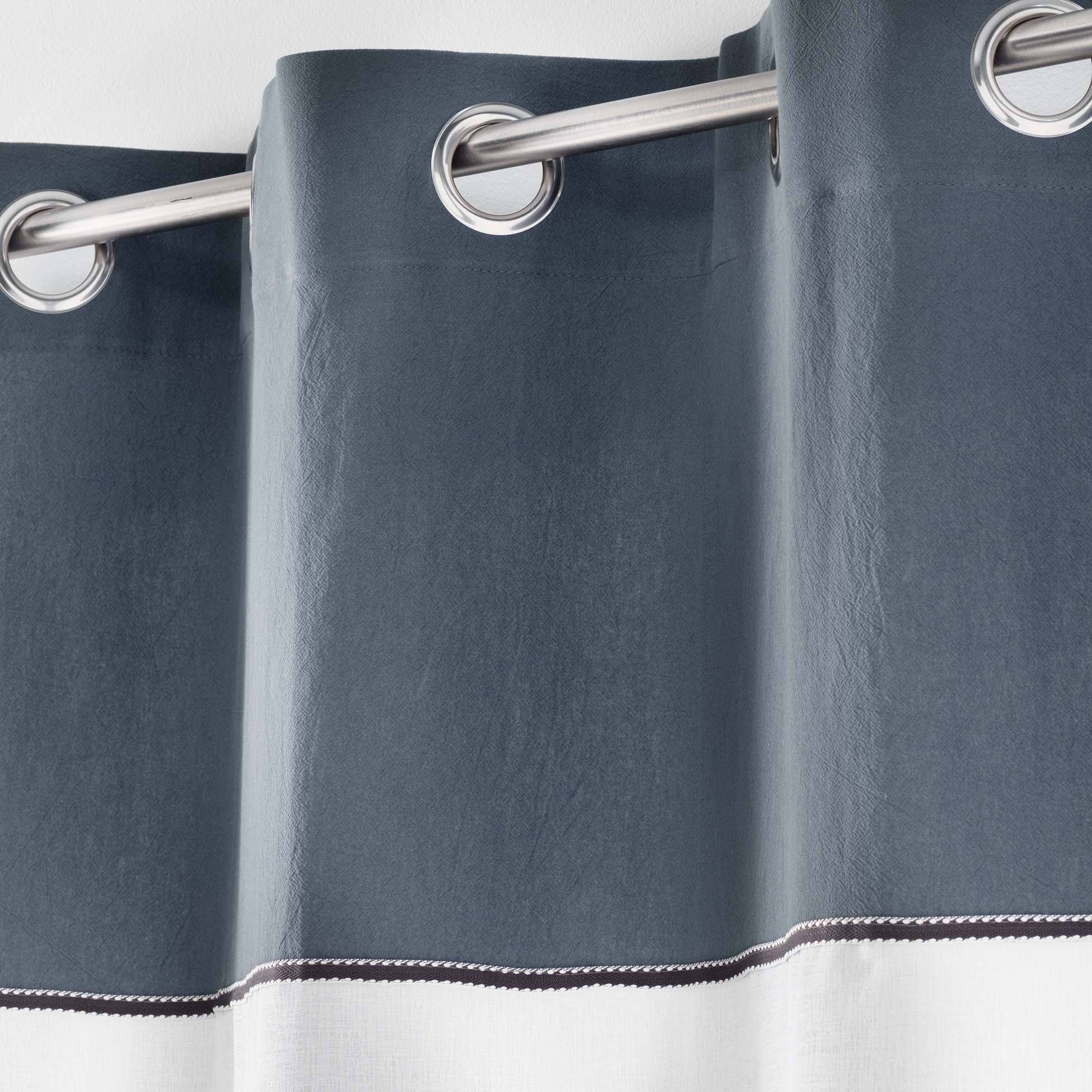 Lot de 2 voilages 137 x 240 cm voile sablé + haut coton Jolibel Bleu