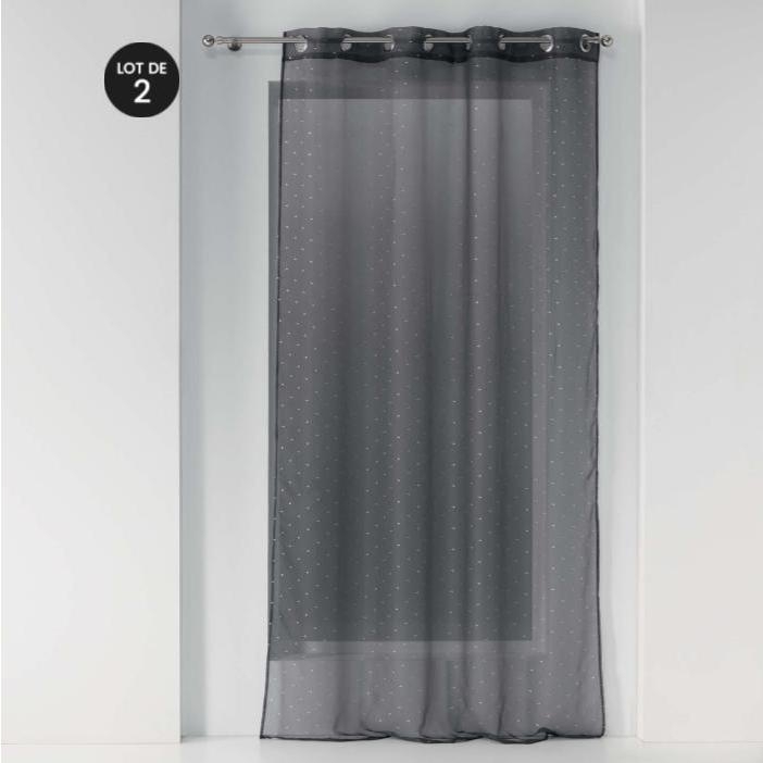 Lot de 2 Voilages 140 x 240 cm pois métallisés Orion Anthracite