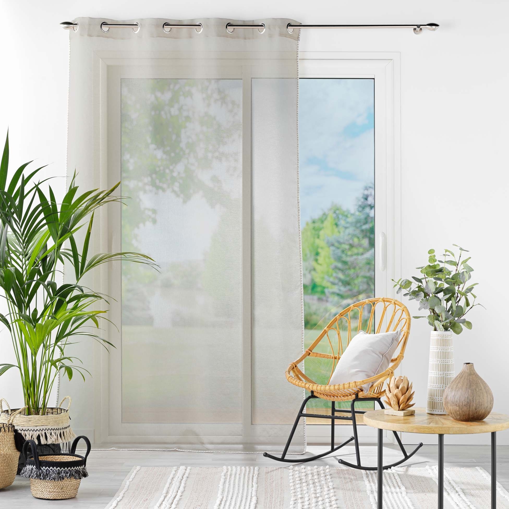 Lot de 2 Voilages à oeillets 140 x 240 cm liseré blanc Louise Beige