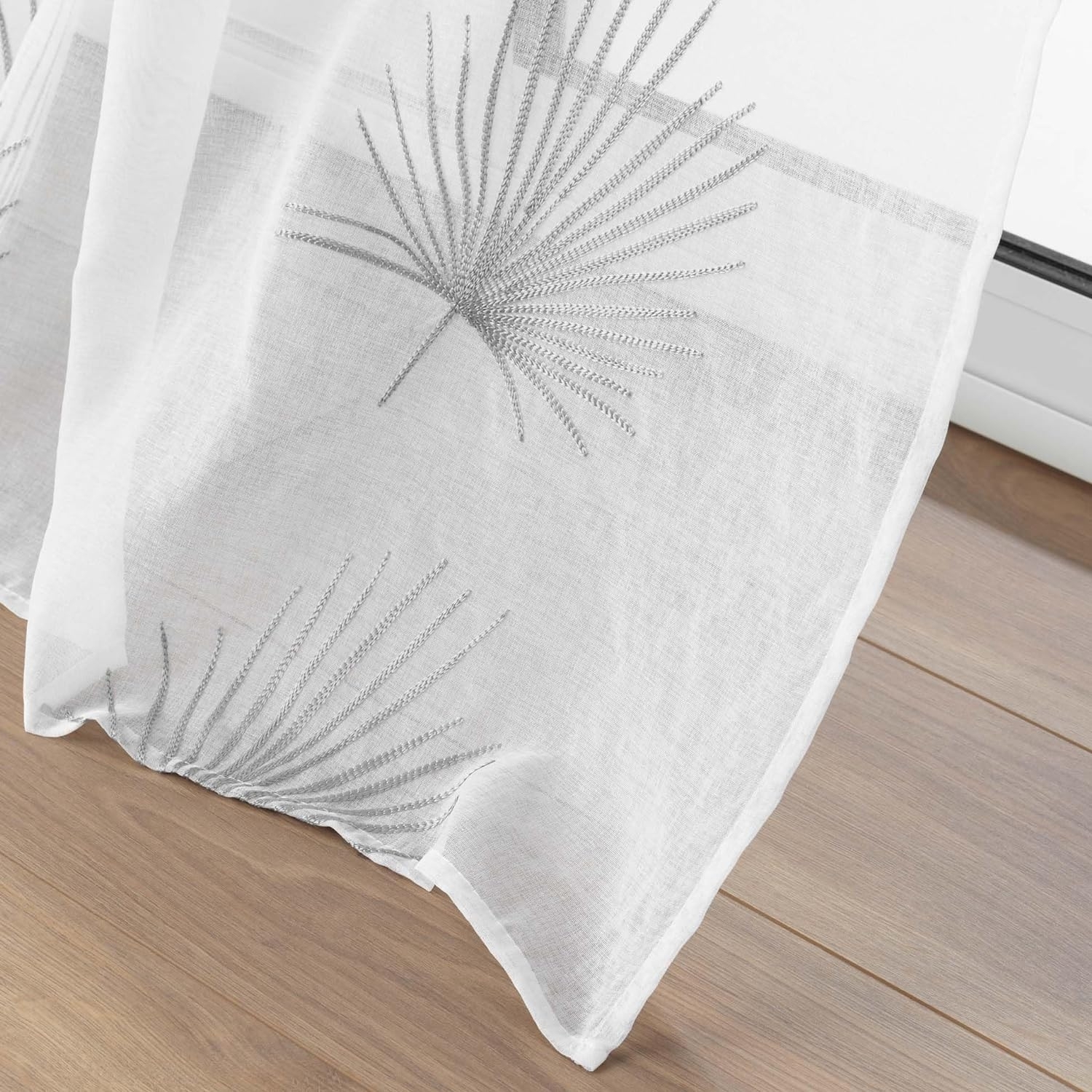Lot de 2 Voilages a oeillets 140 x 240 cm voile sablé brodé Palmaris Gris