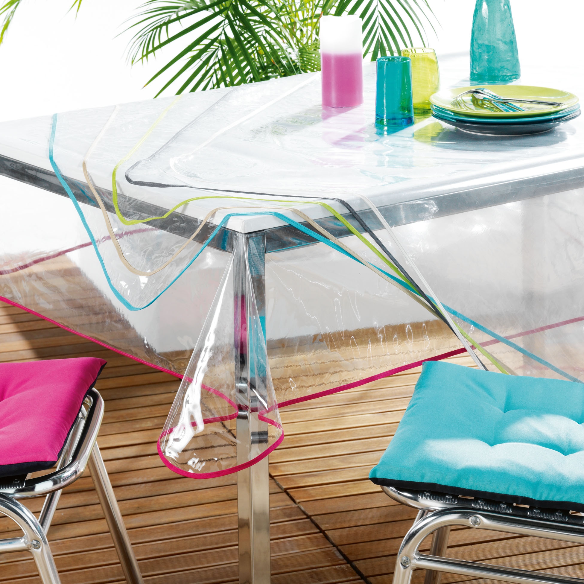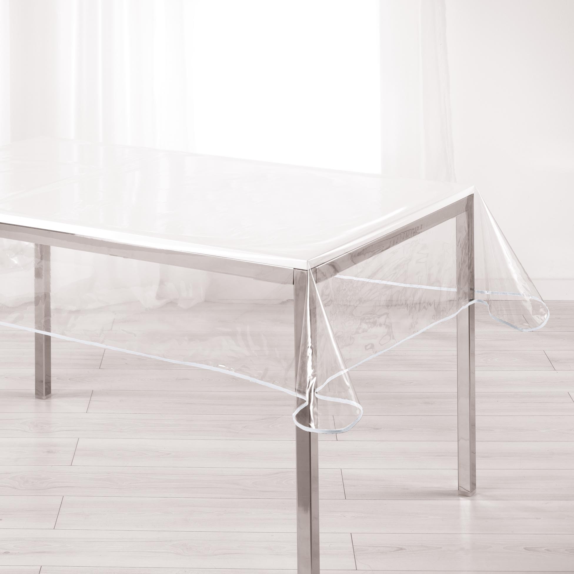 Nappe cristal rectangle 140 x 240 cm pvc uni 15/100e garden/biais Blanc