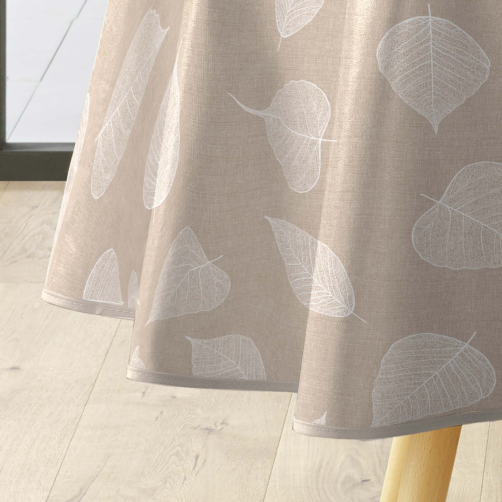 Nappe ronde Ø160 cm PVC imprimé – Finition biais – Feuillys Blanc