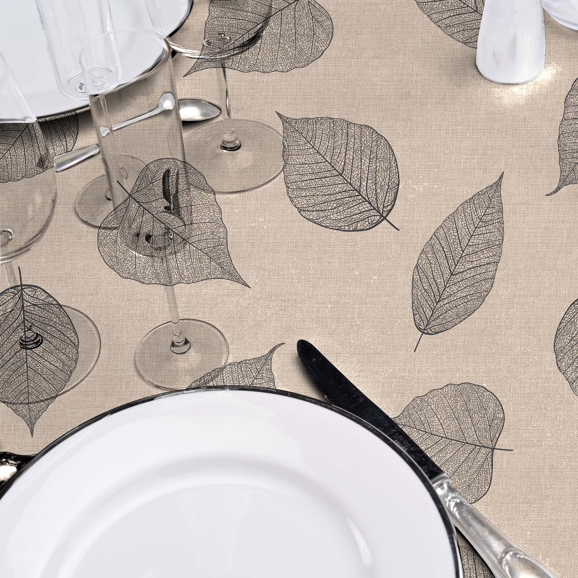 Nappe ronde Ø160 cm PVC imprimé – Finition biais – Feuillys Lin