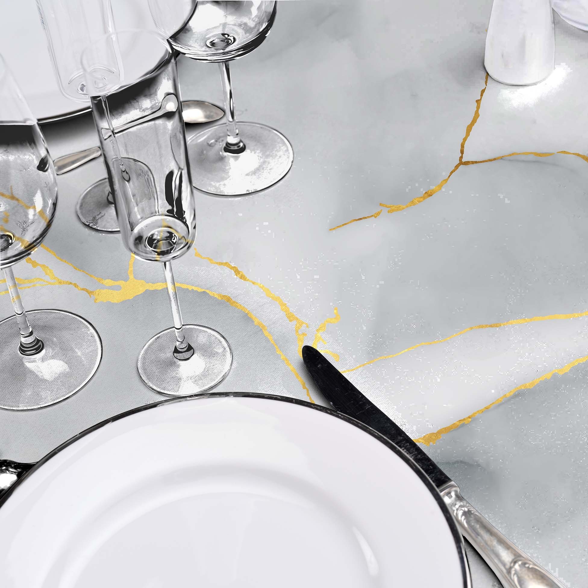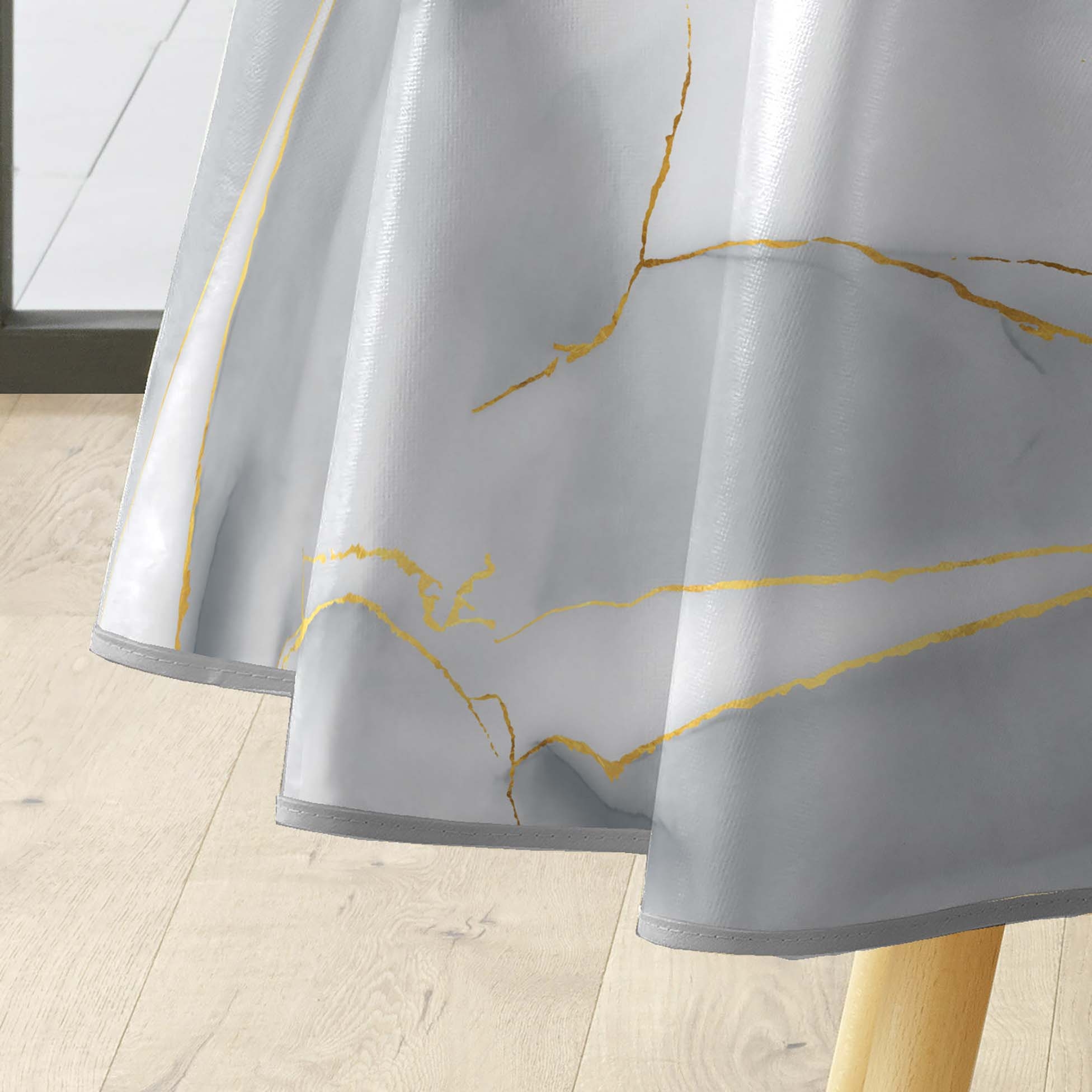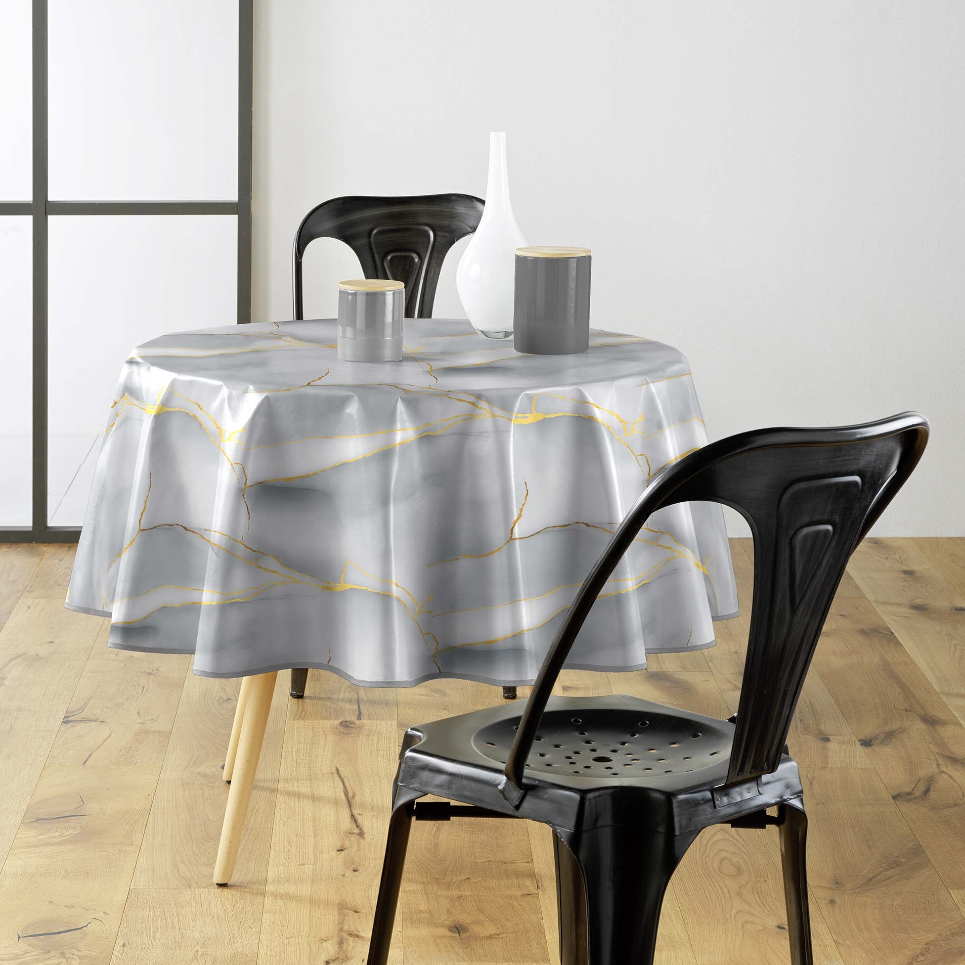 Nappe ronde Ø160 cm PVC imprimé – Finition biais – Paillettes Marbrelle
