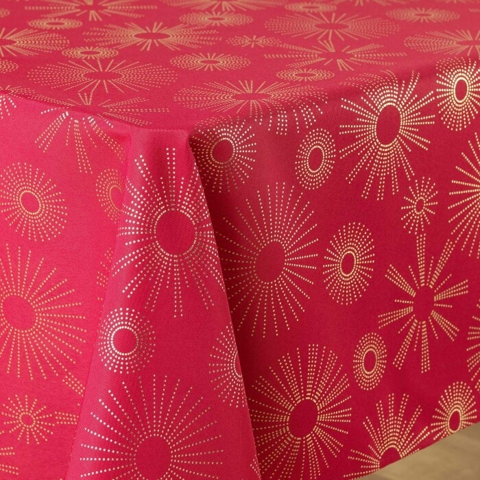Nappe rectangle 150 x 300 cm polyester imprime metallise pampille Rouge/or