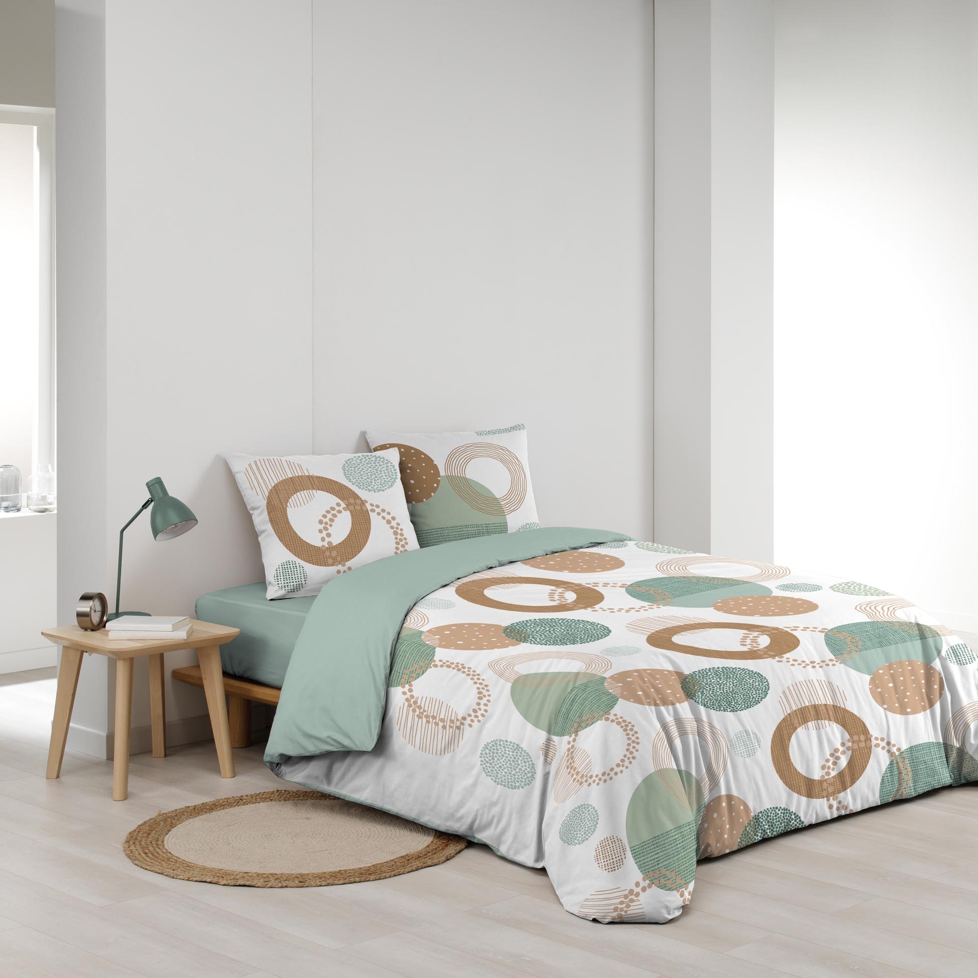 Pack 4 pièces Housse de couette 240 x 220 cm Lunabella + 2 taies + drap housse 140 Beige