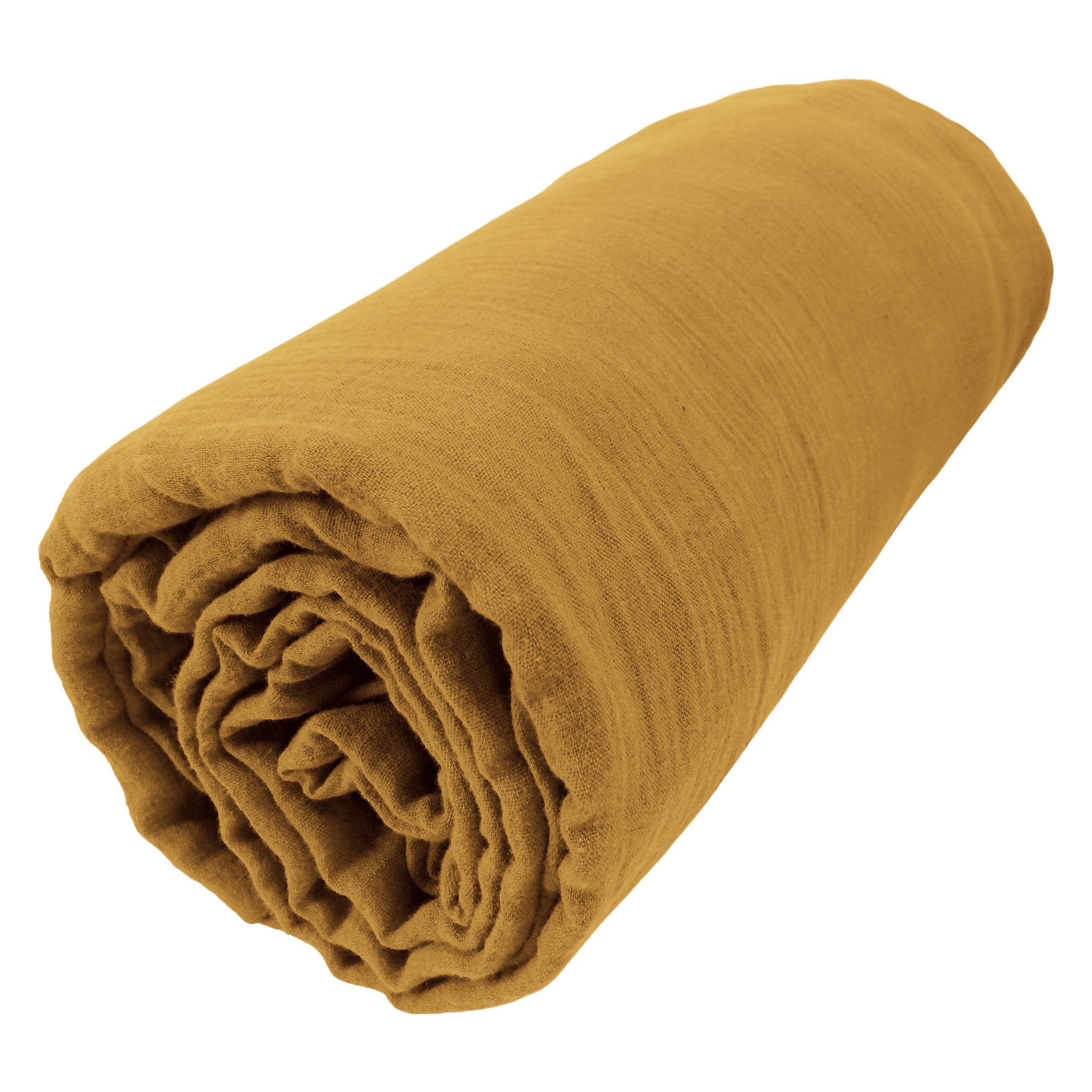 Pack Parure de couette 140x200 cm + Drap housse 90x190 + 1 taie Gaze de coton Bio Jaune