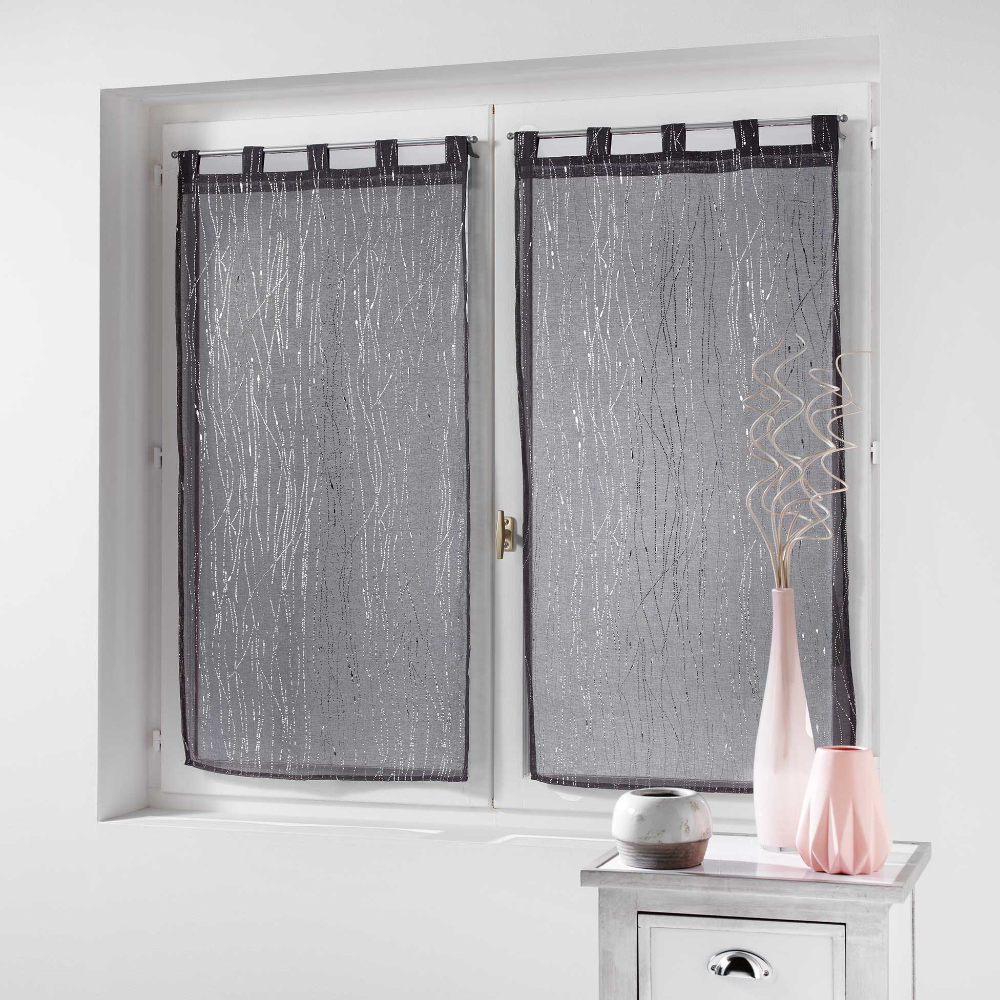 Découvrez le charme des voilages brise bise vendus par paire idéal pour les fenêtres de cuisine. La paire de voilage filiane 2 x 90 x 160 cm Anthracite existe en plusieurs tailles et couleurs différentes pour plaire au plus nombreux. Les brise bise filiane se fixent facilement sur votre tringle et habilleront élégamment vos fenêtres. Lavable en machine.