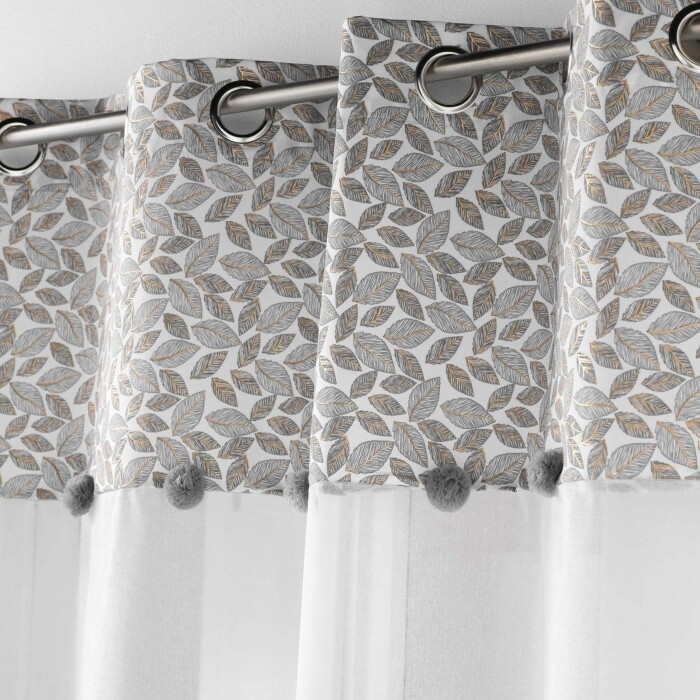 Panneau a oeillets 140 x 240 cm voile sable+top imp met+pompon vilanelle Sans