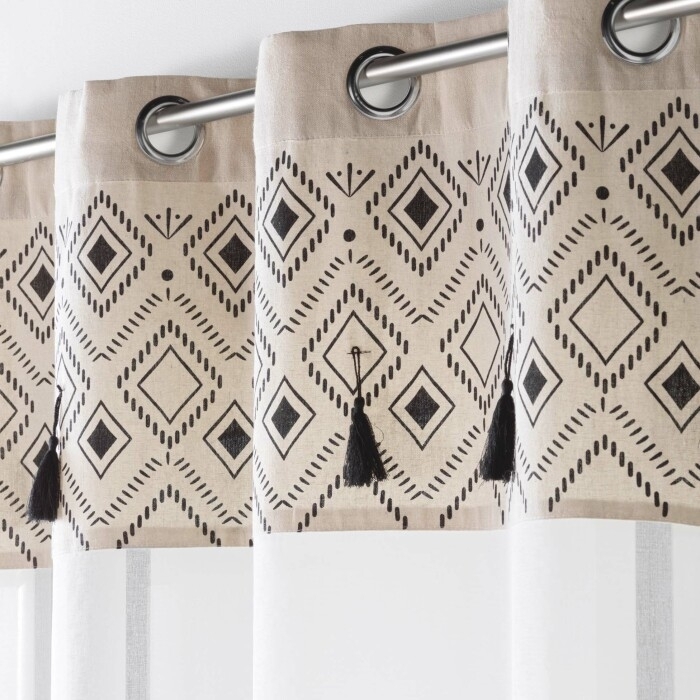 Panneau a oeillets 140 x 240 cm voile sable+top imprime+pompon nalika top Sans