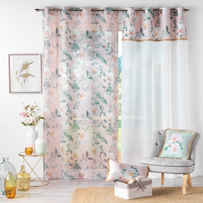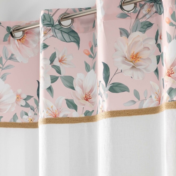 Panneau a oeillets 140 x 280 cm voile sable+top imprime+jute alissia top Rose