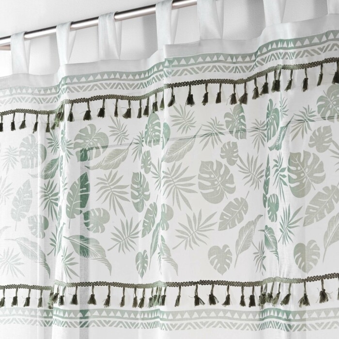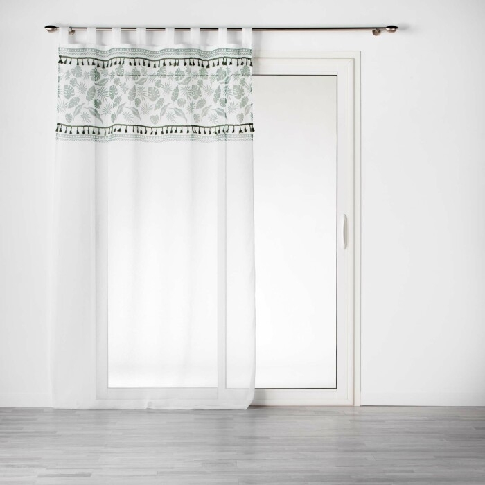 Panneau a passants 140 x 240 cm voile sable+top imprime+pompon milagreen Blanc