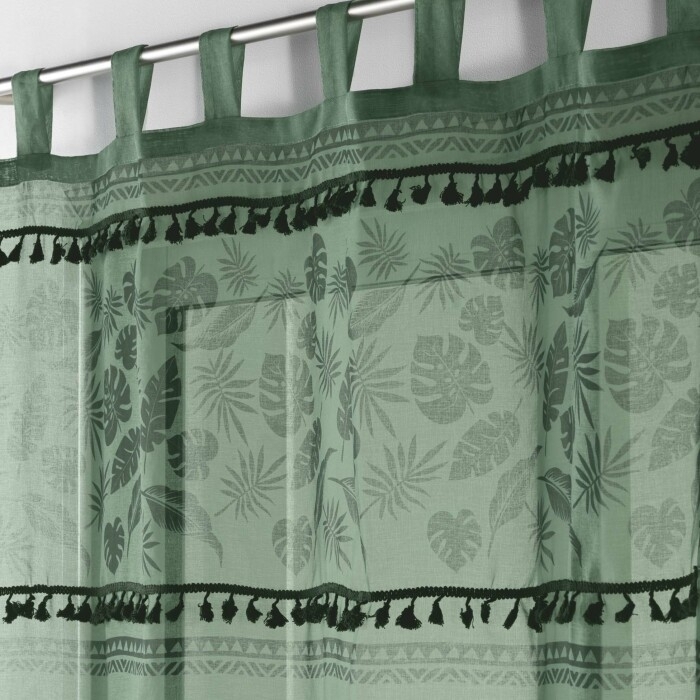 Panneau a passants 140 x 280 cm voile sable+top imprime+pompon milagreen Vert