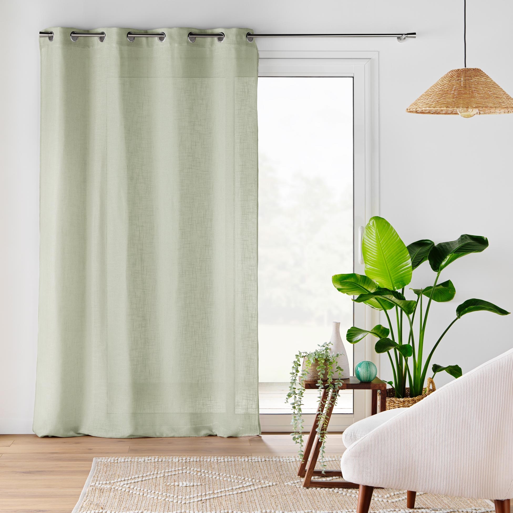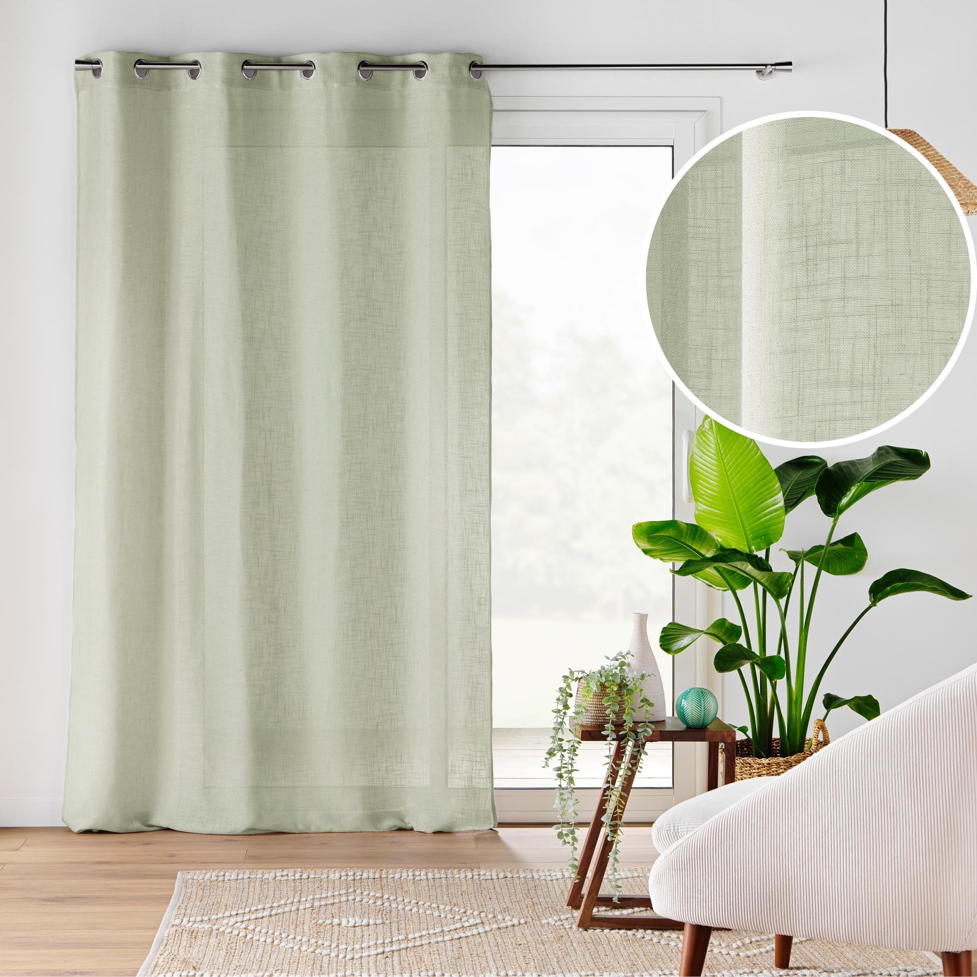 Voilage à Œillets 140 x 240 cm – Effet Lin Tissé – Cloris Sauge