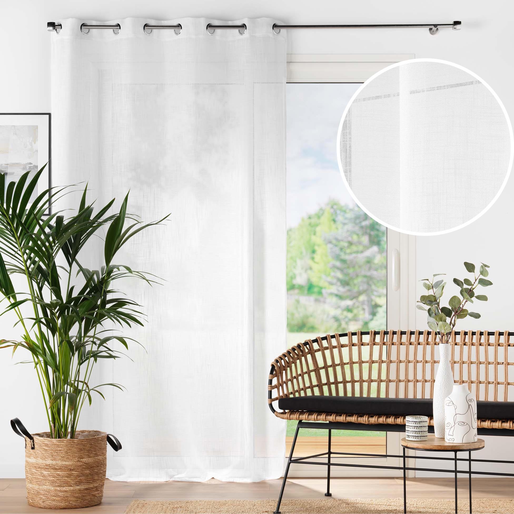 Voilage à œillets 140 x 240 cm – Effet lin tissé Haltona Blanc