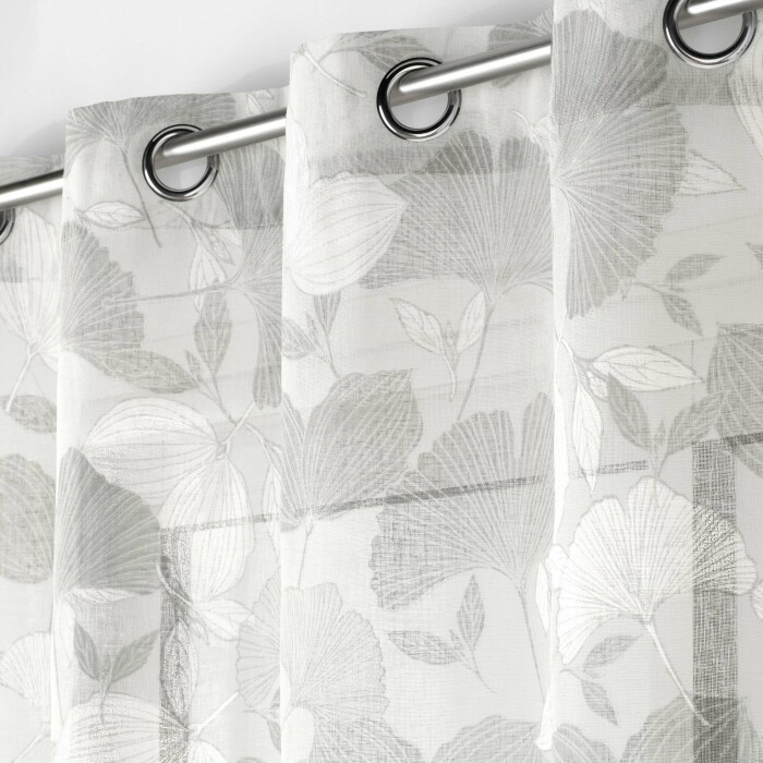 Voilage a oeillets 140 x 240 cm effet lin tissé imprimé Ginko Blanc