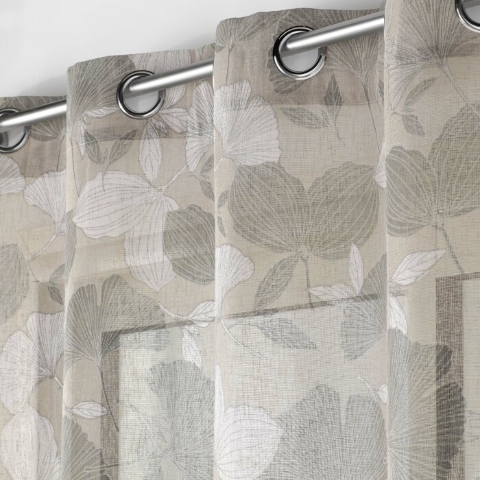 Voilage a oeillets 140 x 240 cm effet lin tissé imprimé Ginko Noisette