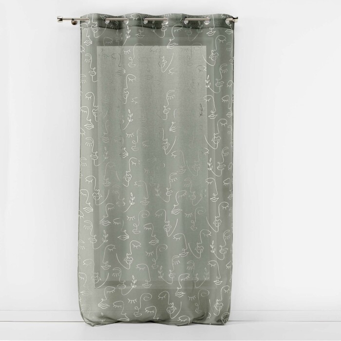 Voilage a oeillets 140 x 240 cm en voile imprimé métallisé Artyline Kaki/argent