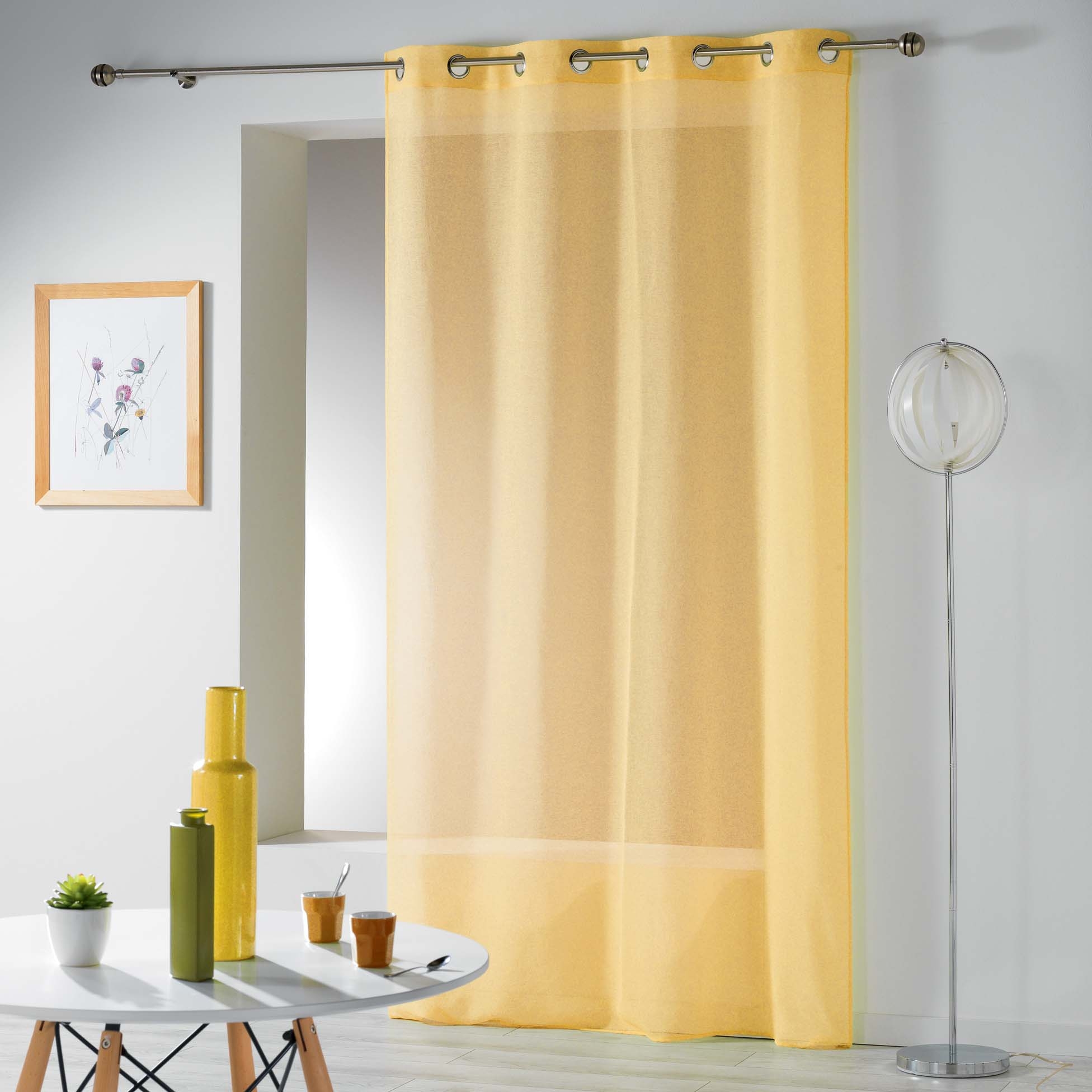 Apportez une touche de légèreté et de couleur à votre intérieur avec ce voilage à œillets Telma. Confectionné dans une étamine crash à la texture légèrement froissée, il filtre délicatement la lumière tout en préservant votre intimité. Le coloris jaune, vif et ensoleillé, crée une atmosphère chaleureuse et pleine de vitalité.