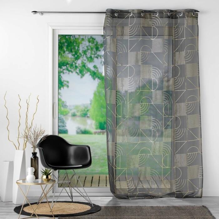 Voilage a oeillets 140 x 240 cm imprimé metallisé Lineor Anthracite/or