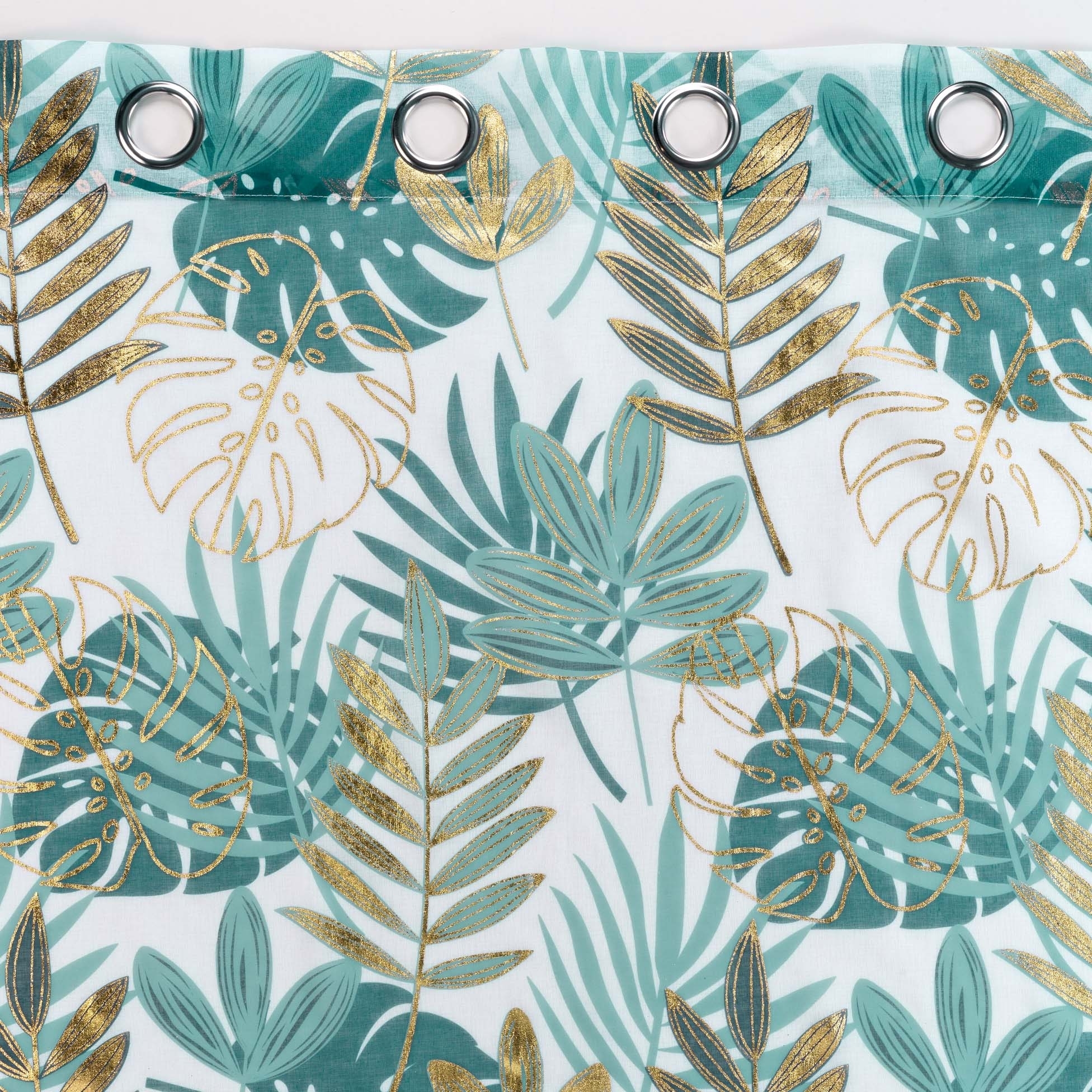 Voilage à oeillets 140 x 240 cm imprimé métallisé Ornella Blanc-émeraude
