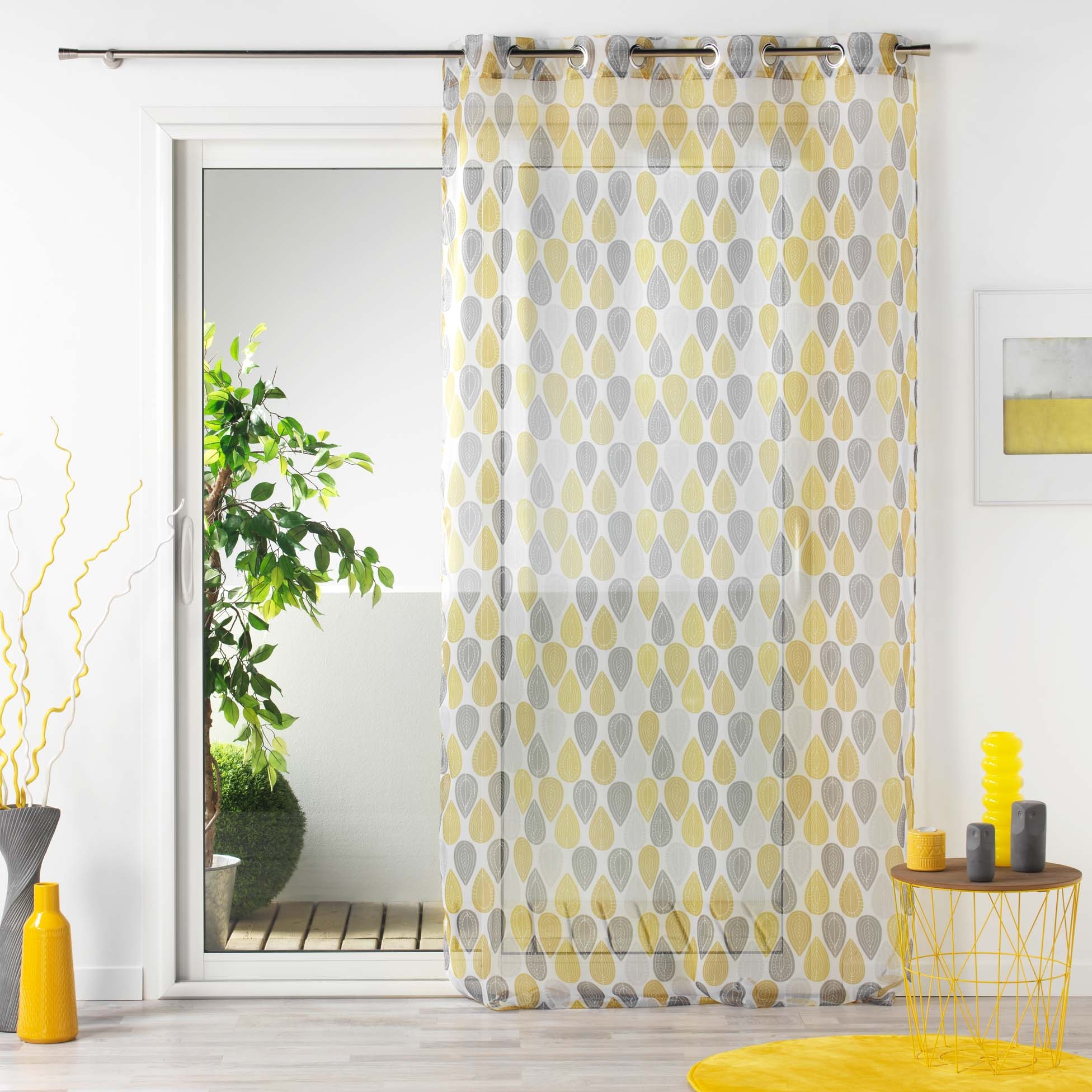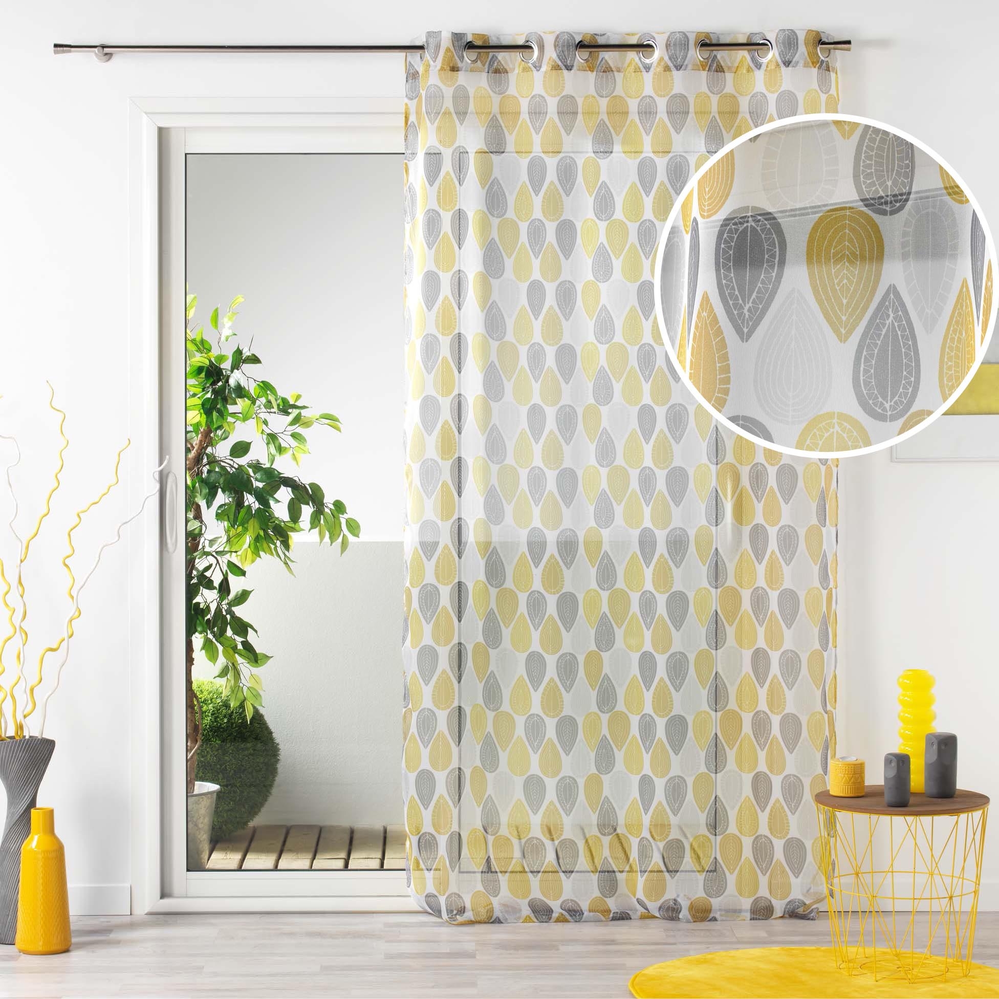 Voilage à œillets – 140 x 240 cm – imprimé transfert Palpito – jaune/blanc
