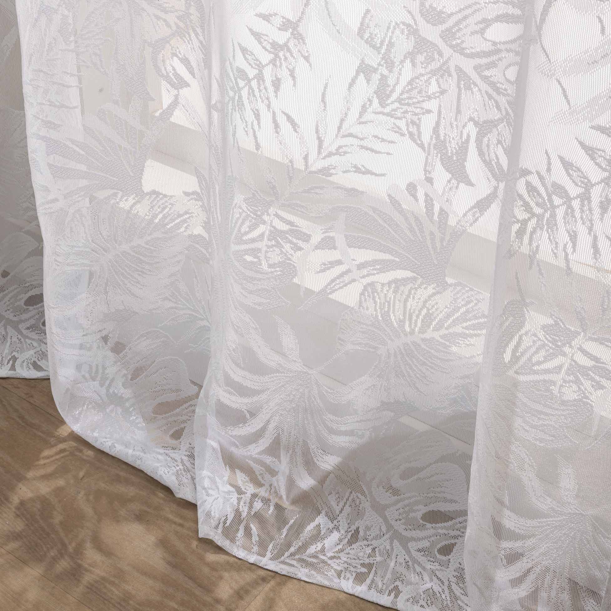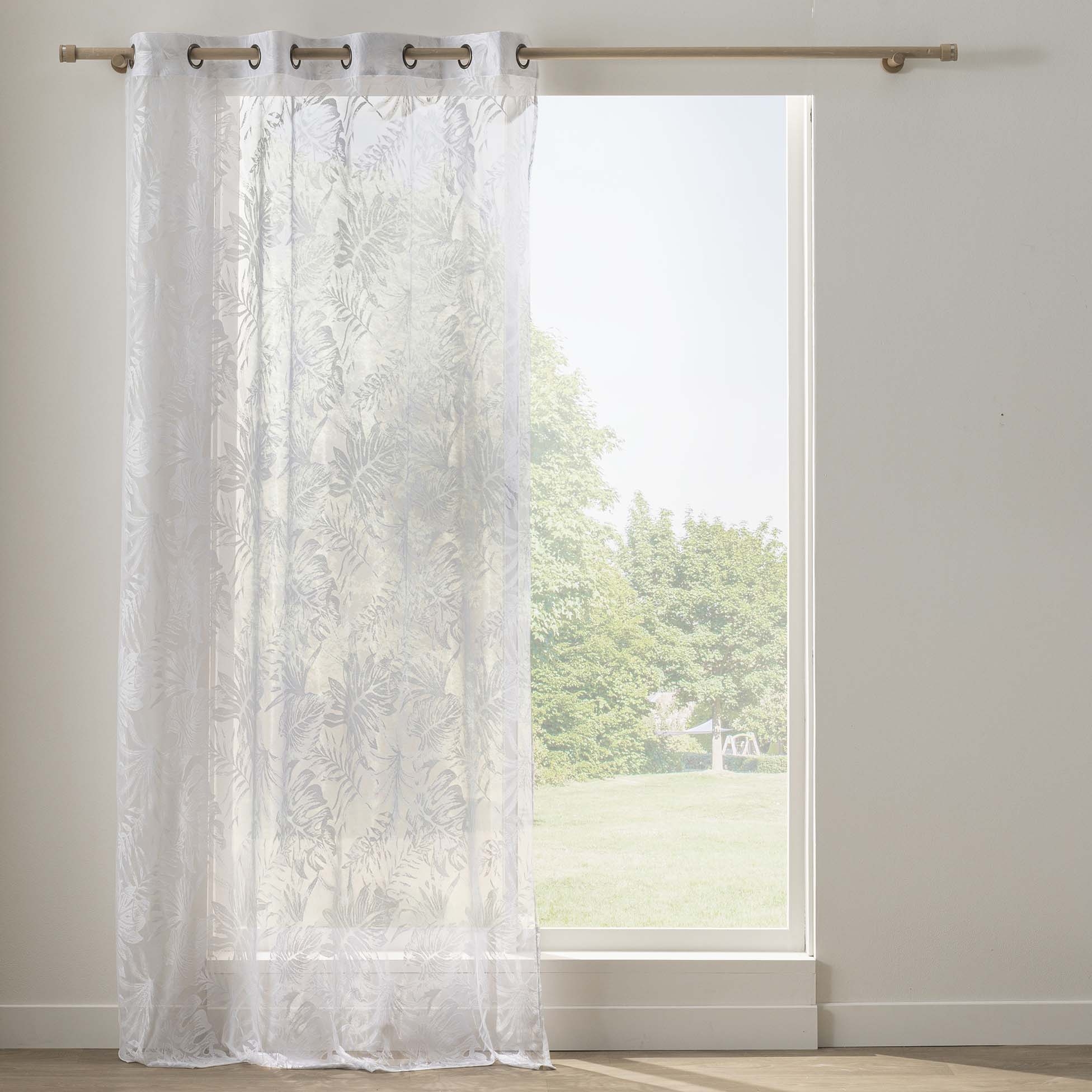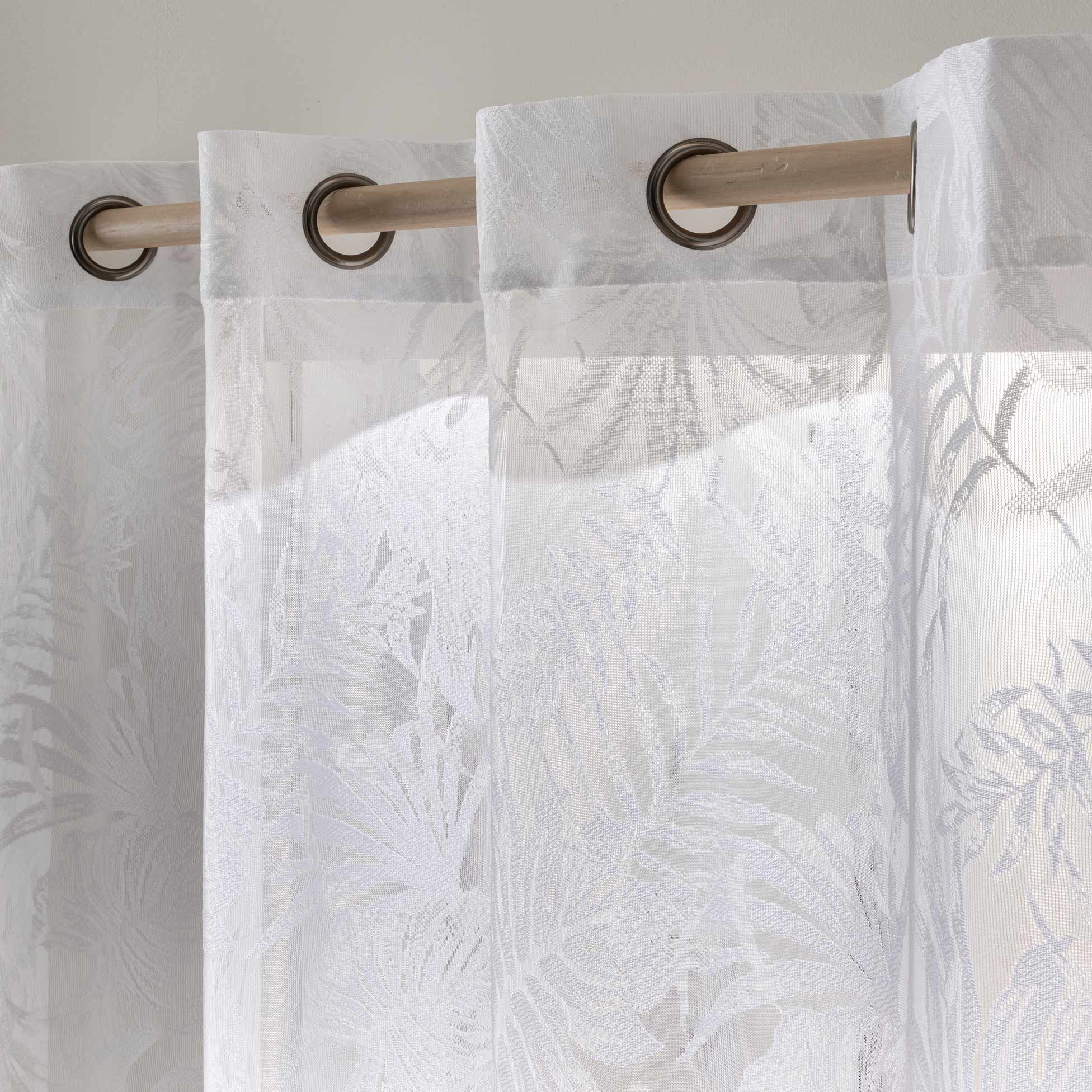 voilage à oeillets 140 x 240 cm maille ysora — blanc motif feuillage