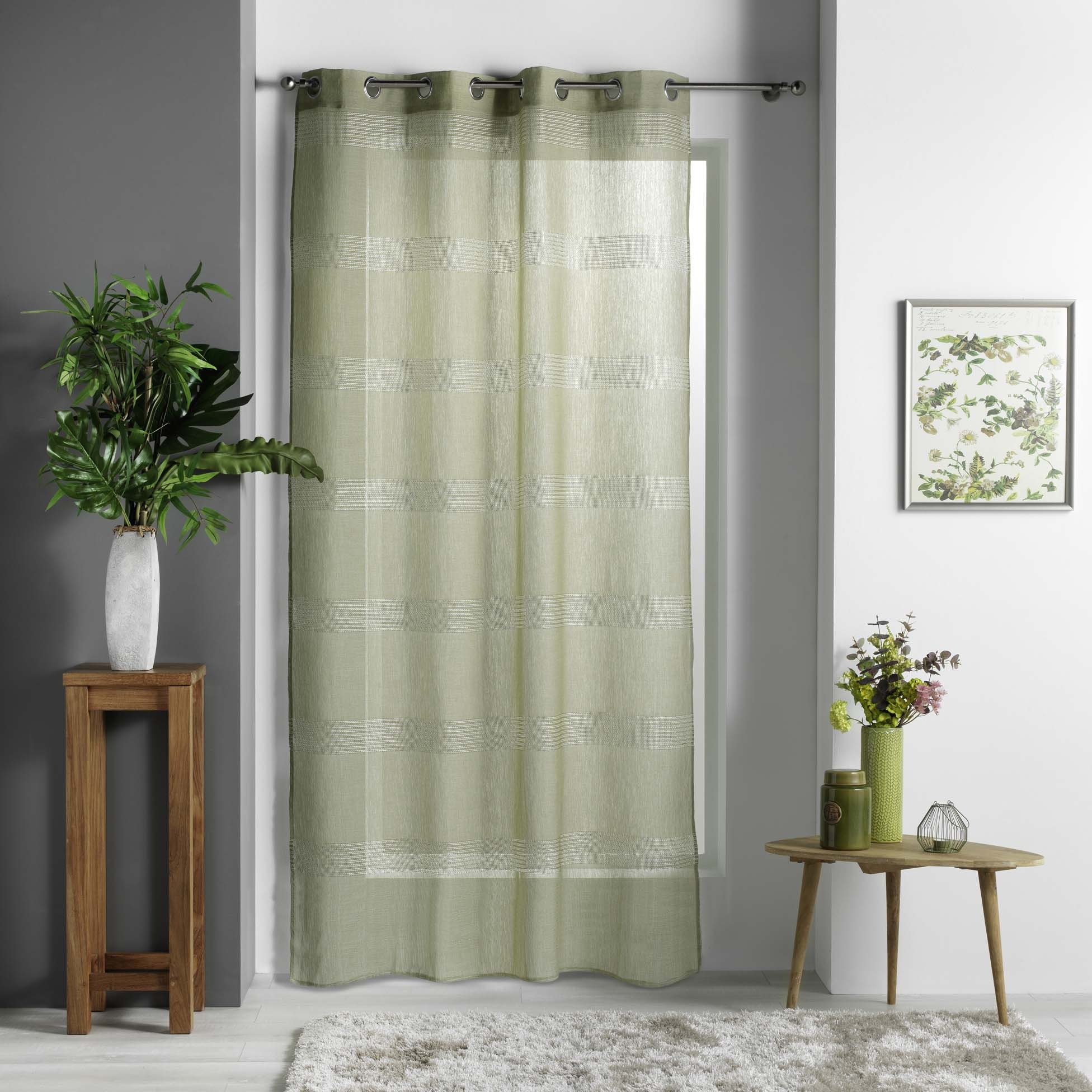 Voilage a oeillets 140 x 240 cm voile sable ajoure ajourela Kaki