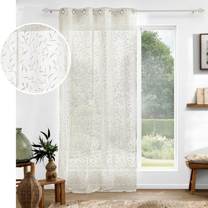 Voilage à Œillets 140 x 240 cm - Voile Sablé Appliqué Métallisé Maïssa