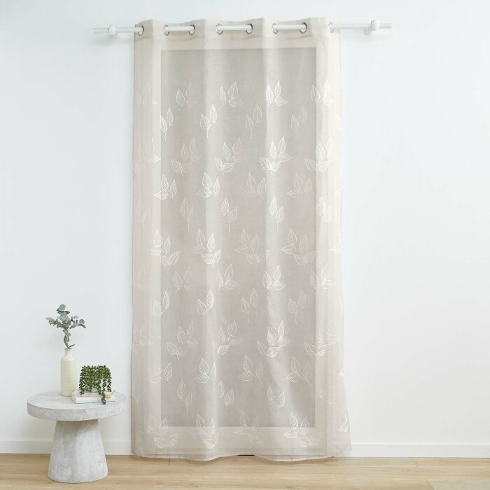Voilage a oeillets 140 x 240 cm voile sablé brodé Berry Taupe