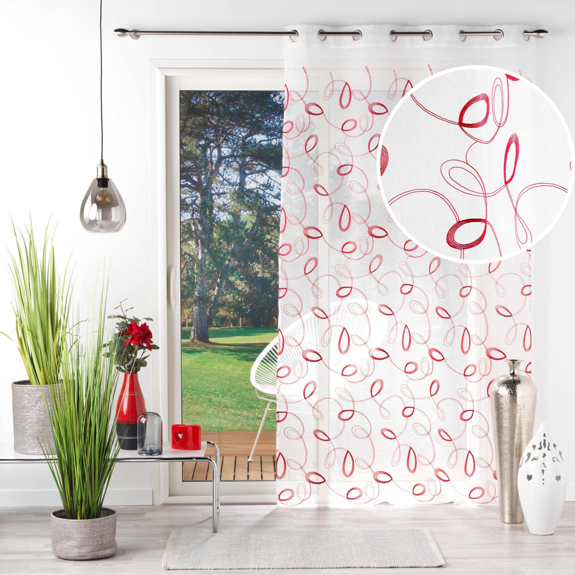 Voilage à œillets 140 x 240 cm – Voile sablé brodé Hoops – Rouge