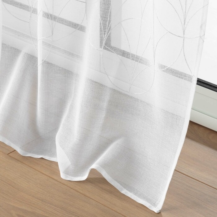 Apportez légèreté et élégance à votre intérieur avec le voilage Félicia Blanc. Confectionné dans un voile sablé finement brodé de motifs métallisés, il diffuse une lumière douce et naturelle tout en apportant une touche de raffinement à vos fenêtres.