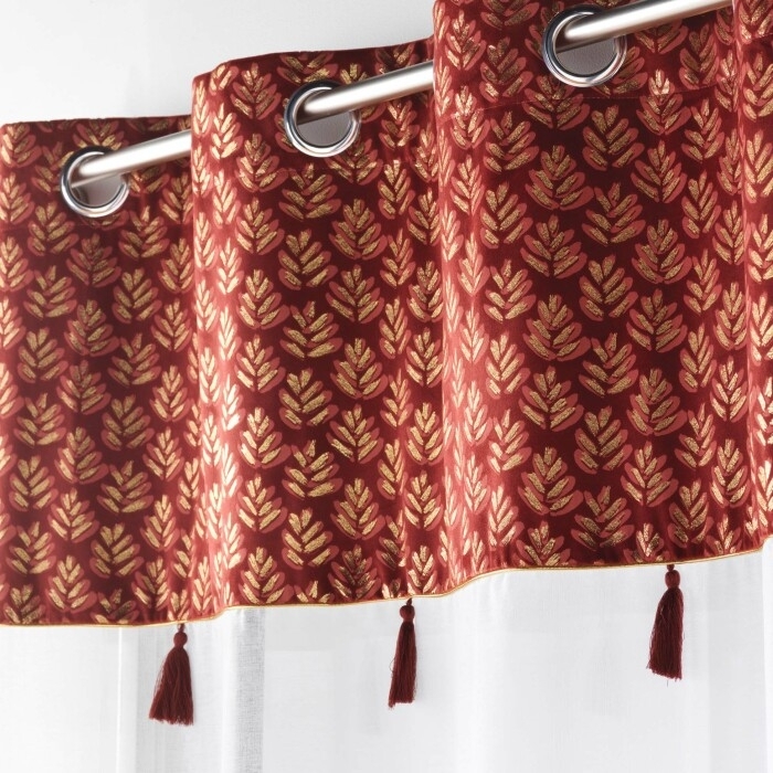 Voilage a oeillets 140 x 240 cm voile sablé + haut velours Evie Bordeaux