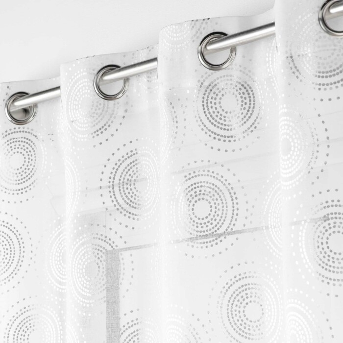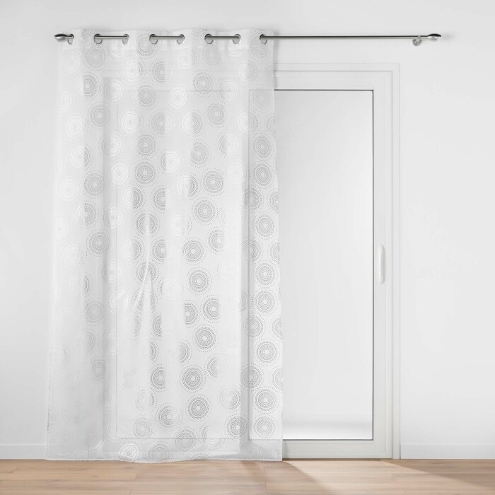 Décorez votre intérieur avec notre voilage prêt à poser en voile sablé blanc et ses motifs métallisés argent.