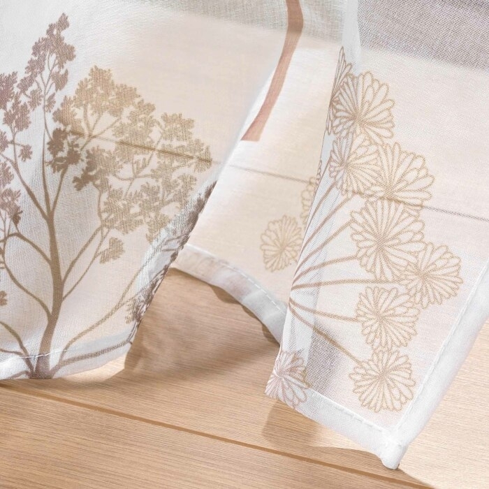 Offrez à votre intérieur une touche d'exotisme avec le voilage Palmea Naturel. Ce rideau en voile sablé léger est orné d’un imprimé raffiné de palmiers et d’arbres tropicaux aux teintes naturelles et métalliques, apportant une ambiance chaleureuse et élégante à vos espaces de vie.