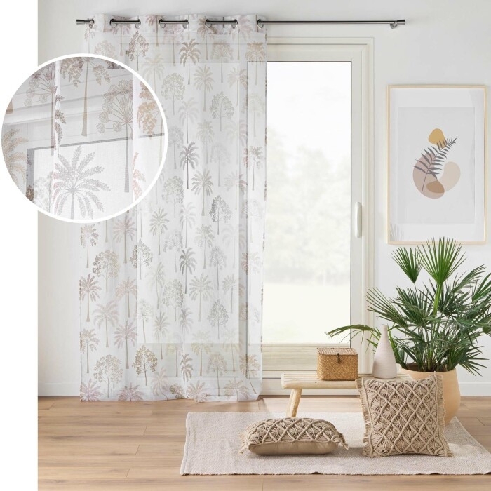 Voilage a oeillets 140 x 240 cm voile sable imprime Palmea Naturel