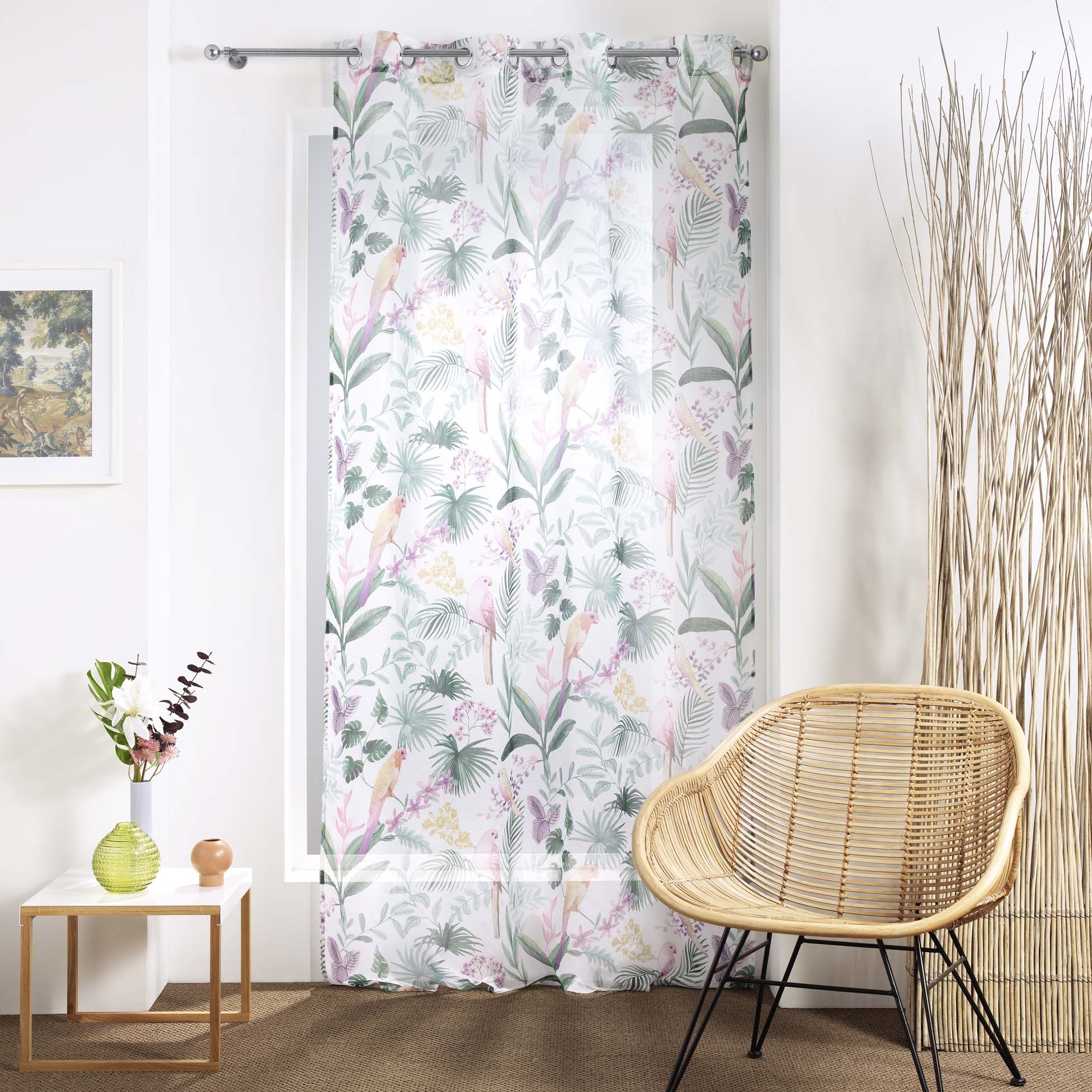 Parsemé de perroquets et de feuillages, ce voilage mettra une touche de romantisme à votre décoration.