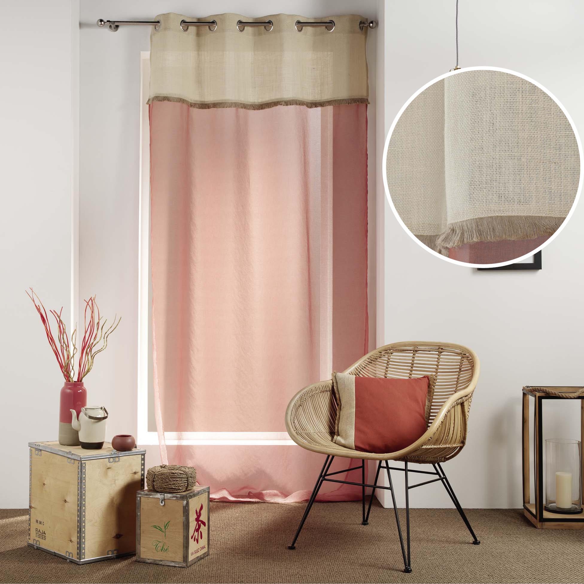 Voilage à œillets 140 x 240 cm – Voile sablé & jute – Greenybel Terracotta