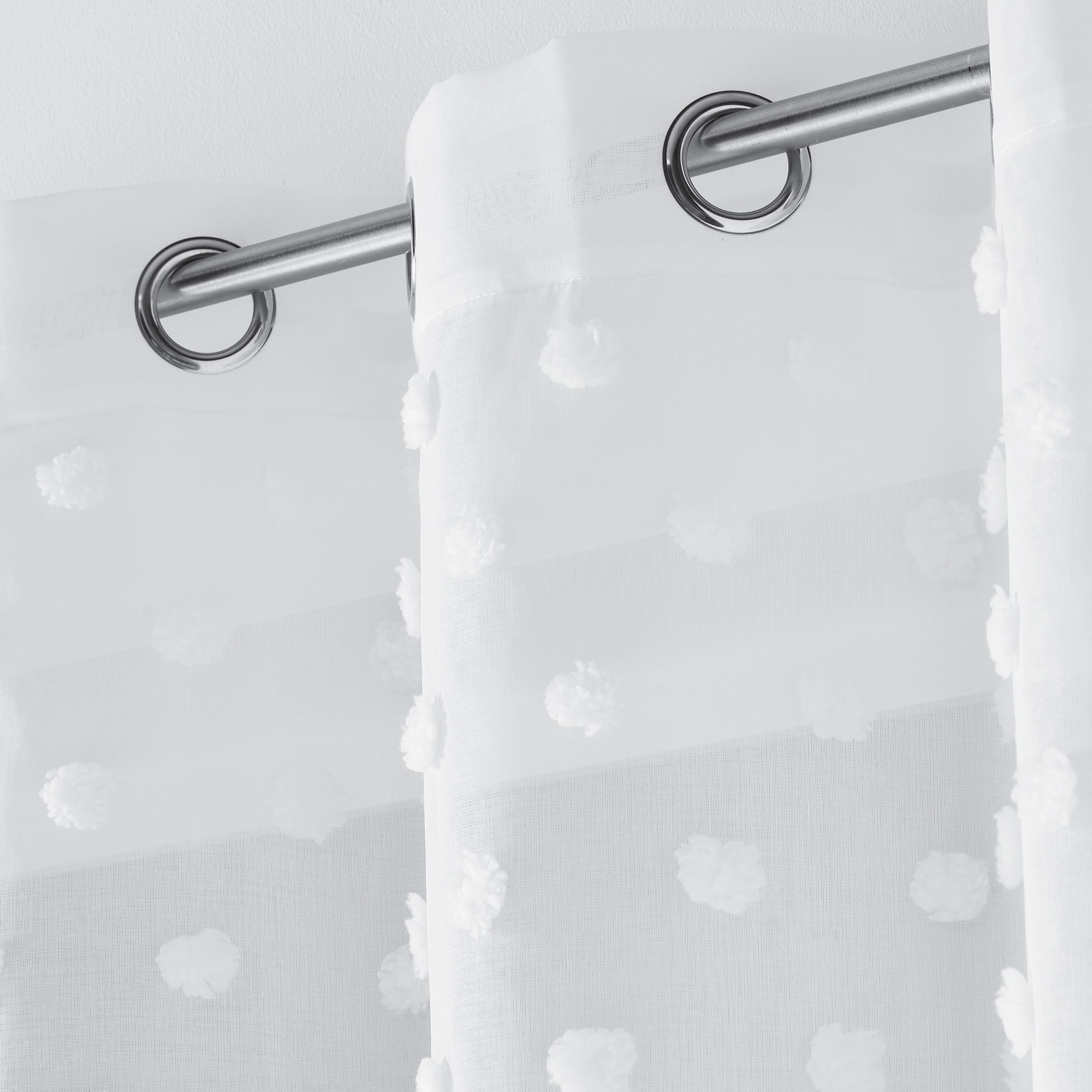 On craque pour ce voilage à œillets 140x240 cm uni blanc parsemé de pompons.