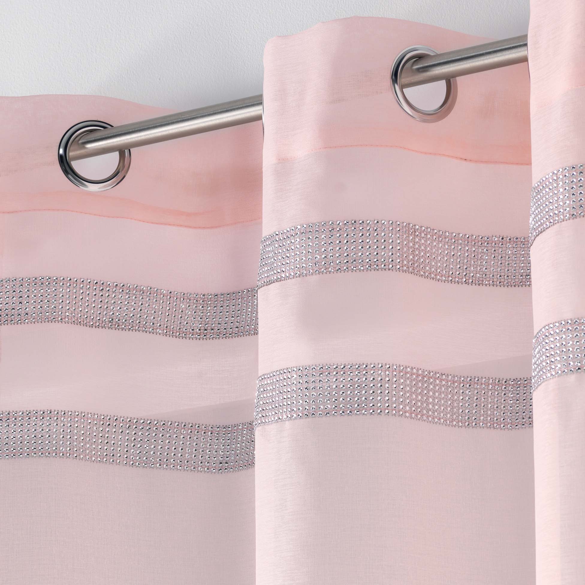 Voilage à oeillets 140 x 240 cm voile sablé + strass Satinela Rose
