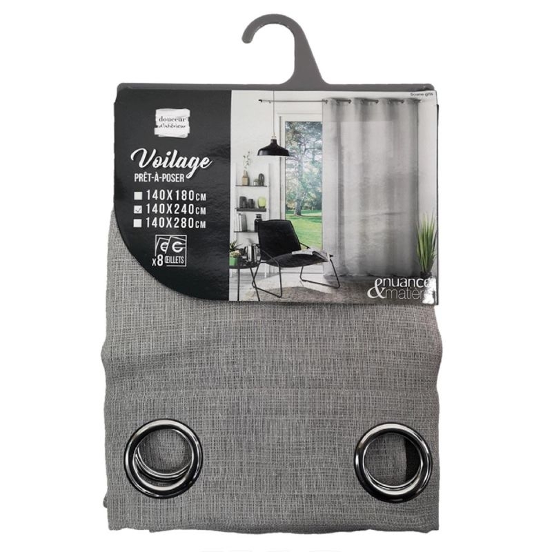 Voilage à oeillets 140 x 240 cm voile tissé Soane gris