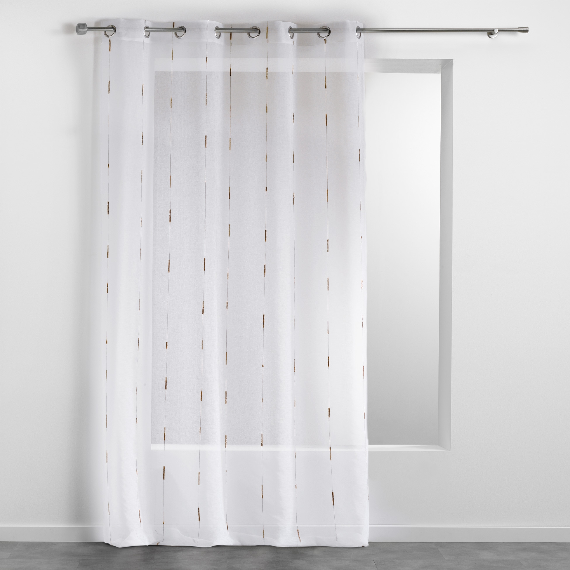 Voilage a oeillets 140 x 280 cm voile sablé fils chenille chenilla Naturel