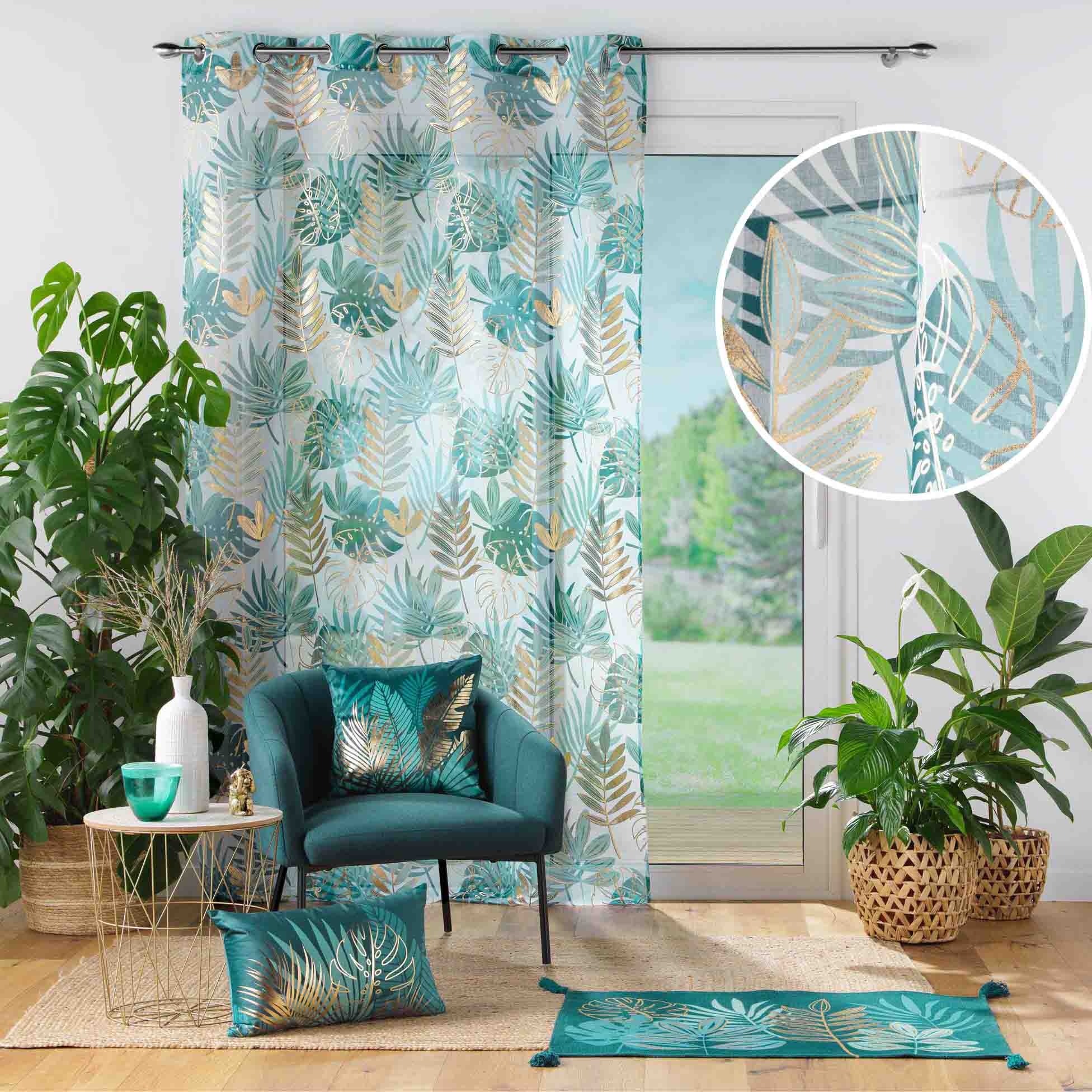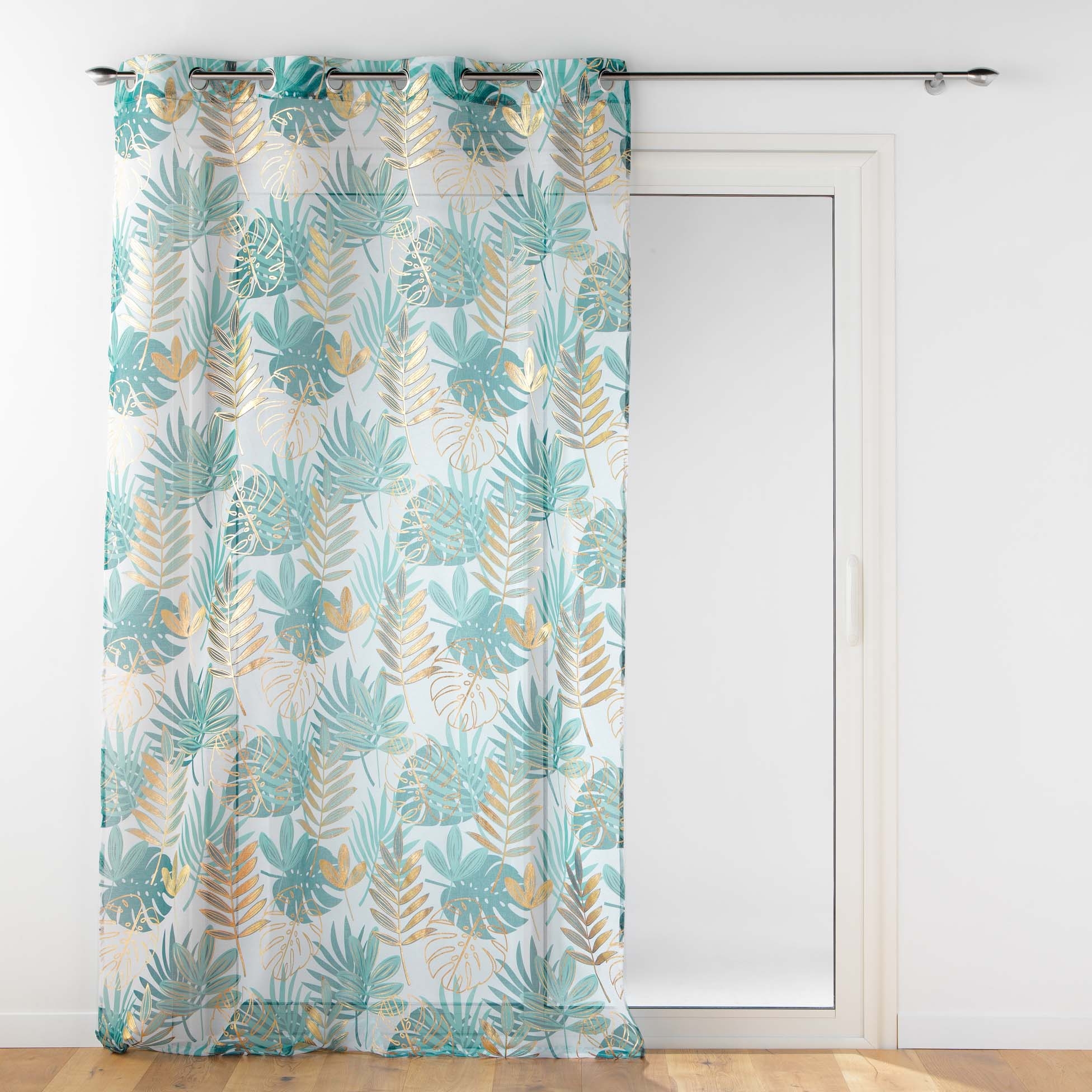 Voilage à œillets 140 x 280 cm voile sable imprimé métallisé Ornella blanc / émeraude