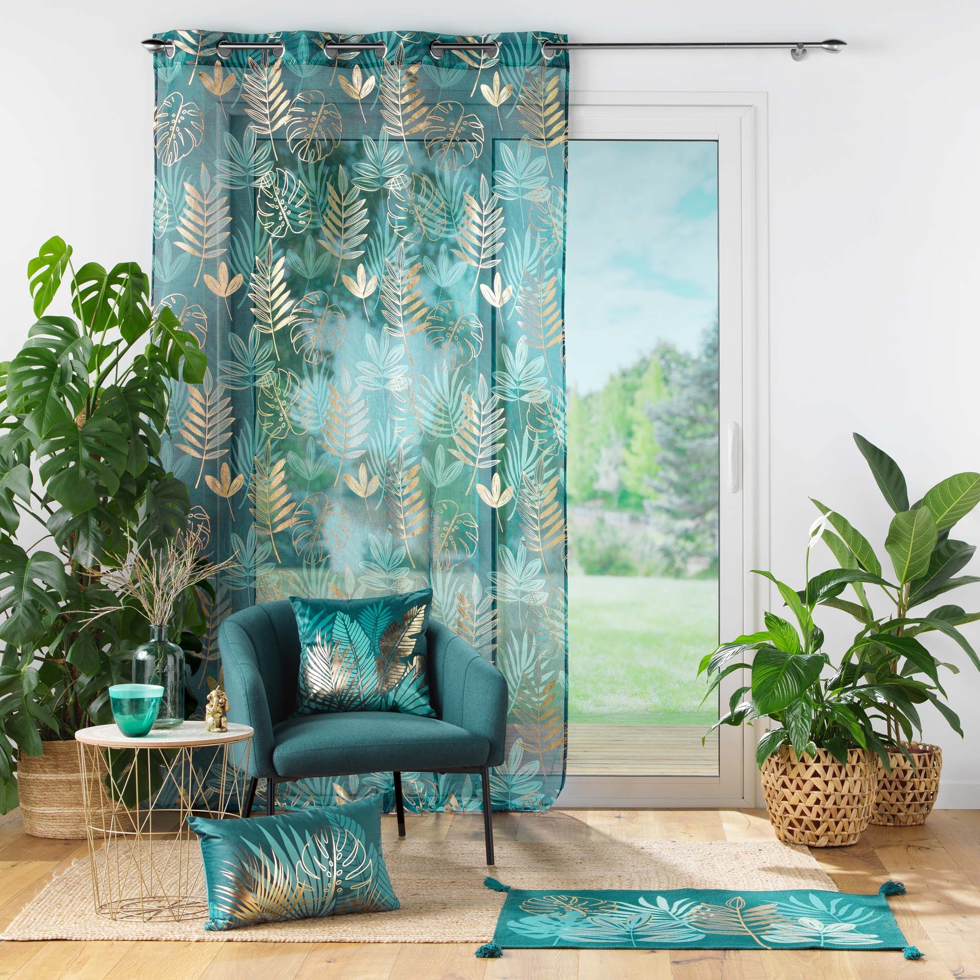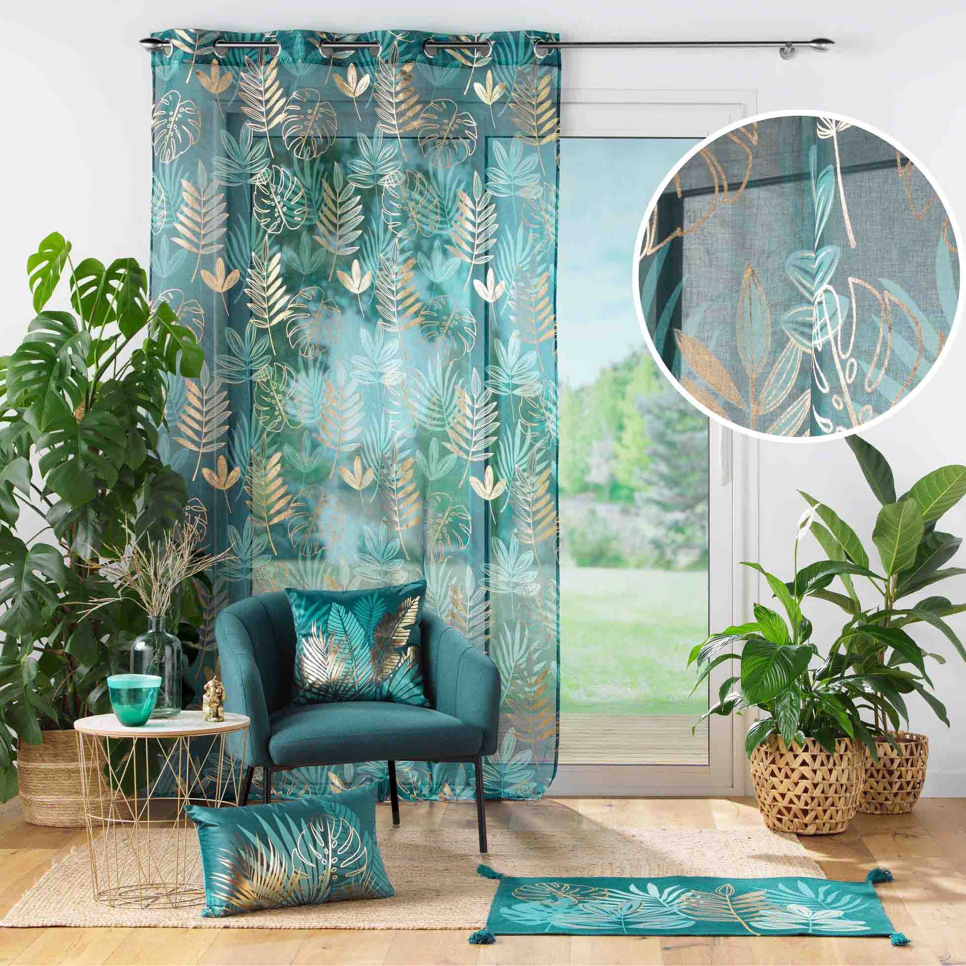 Voilage à œillets 140 x 280 cm voile sable imprimé métallisé Ornella émeraude