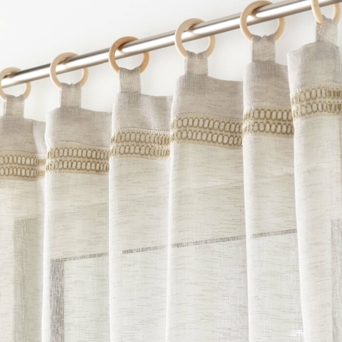 Voilage a oeillets bois 140 x 240 cm voile tisse+fantaisie Mileo Beige