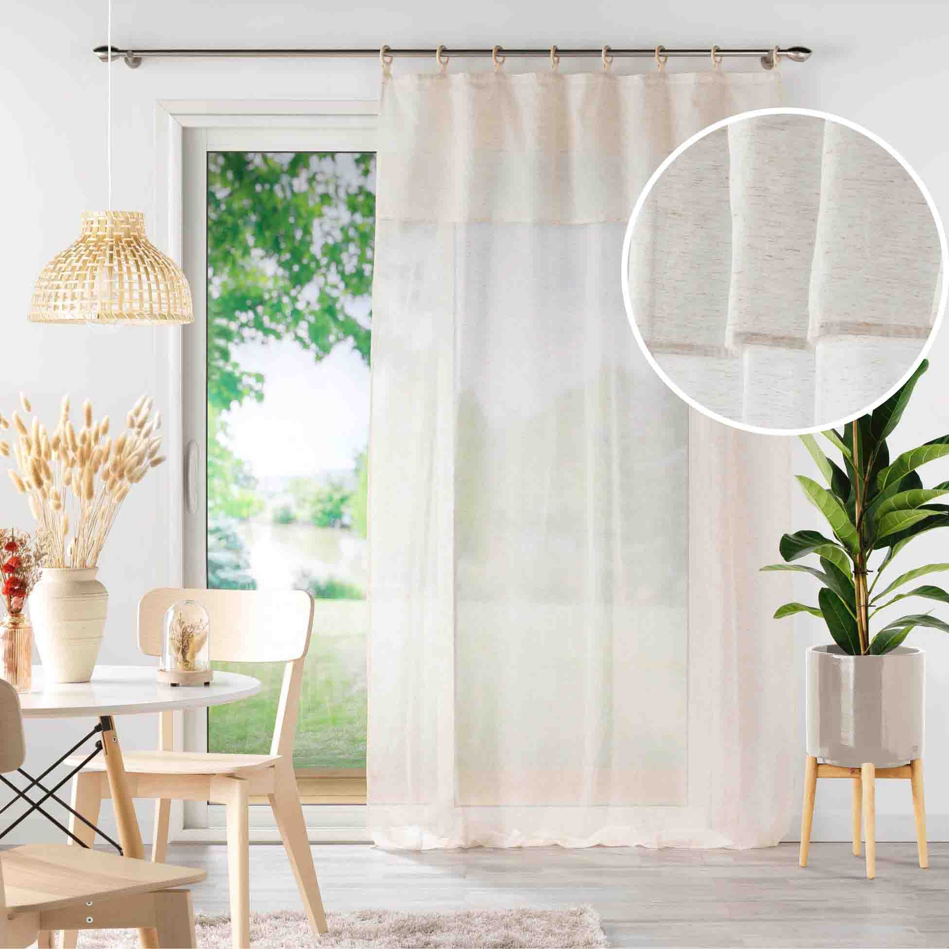 Voilage à œillets bois + volant – 140 x 240 cm – Effet lin tissé Norine