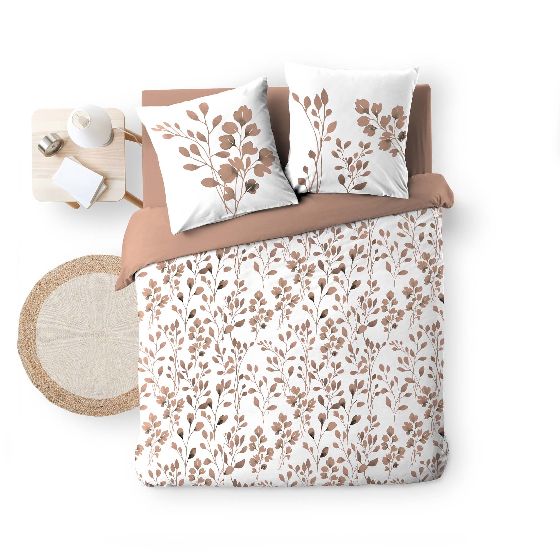 Housse de couette 240 x 220 cm coton 57 fils MAIWEN Mocha + 2 taies – Motif végétal
